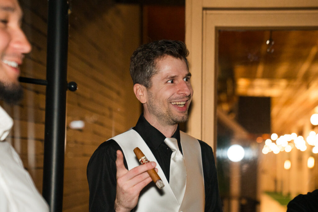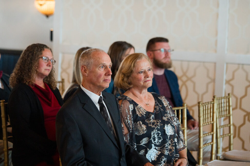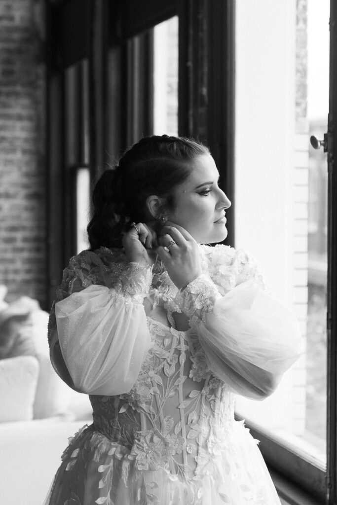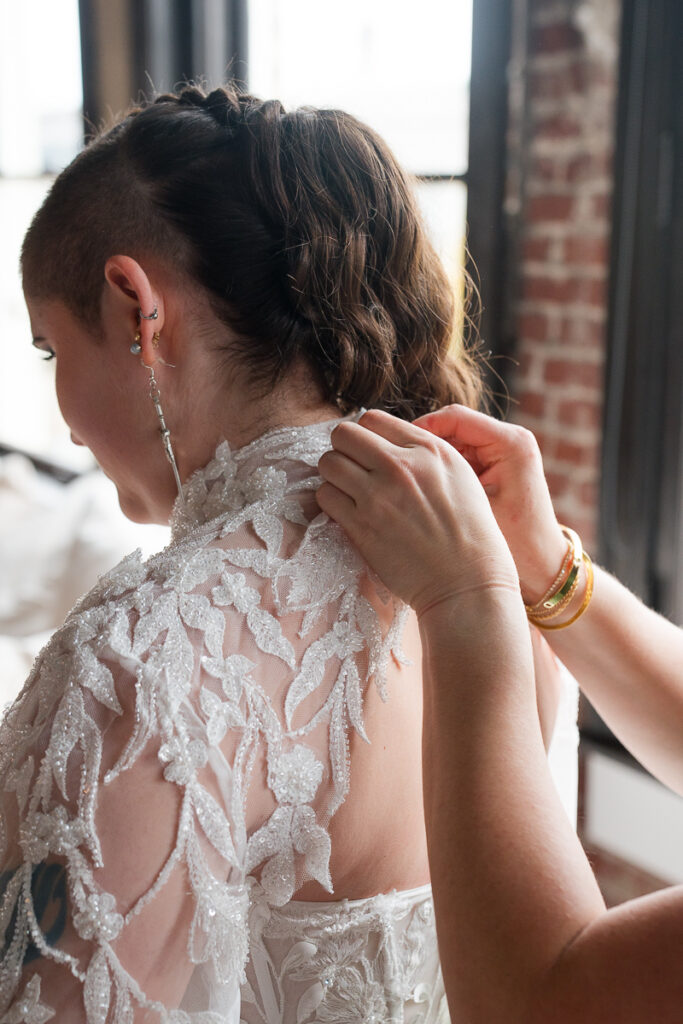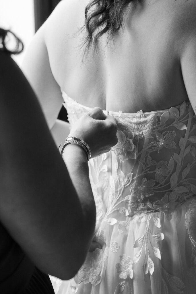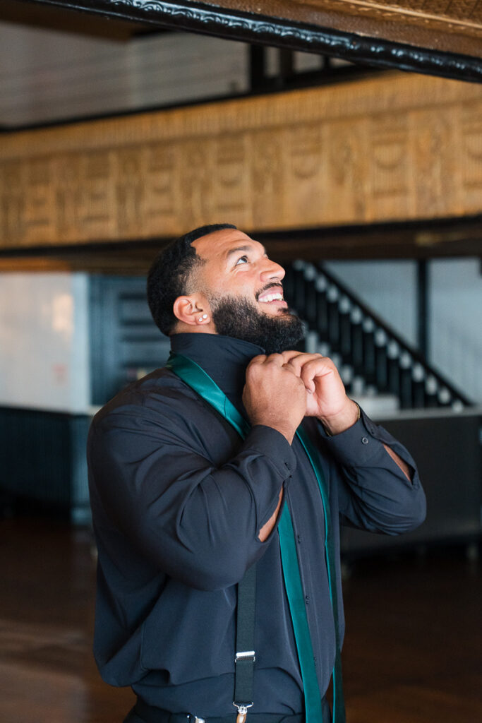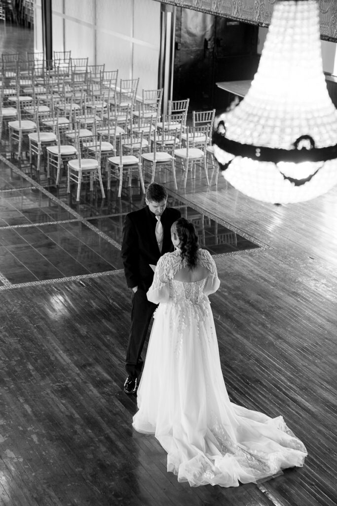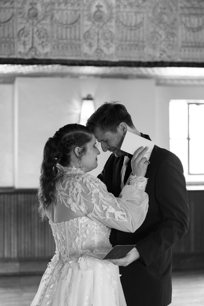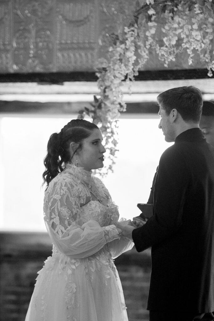 As I arrived at the venue, trick or treaters were mingling on the streets. The fall vibes were at peak level, like something out of a Hallmark movie. The day started as both bride and groom got ready with their bridal party. Julia’s bridesmaid’s hyped her up as she got dressed in a gorgeous corseted gown. Emerson gave his groomsmen customized Funko pops, a fun gift to thank them for the support!