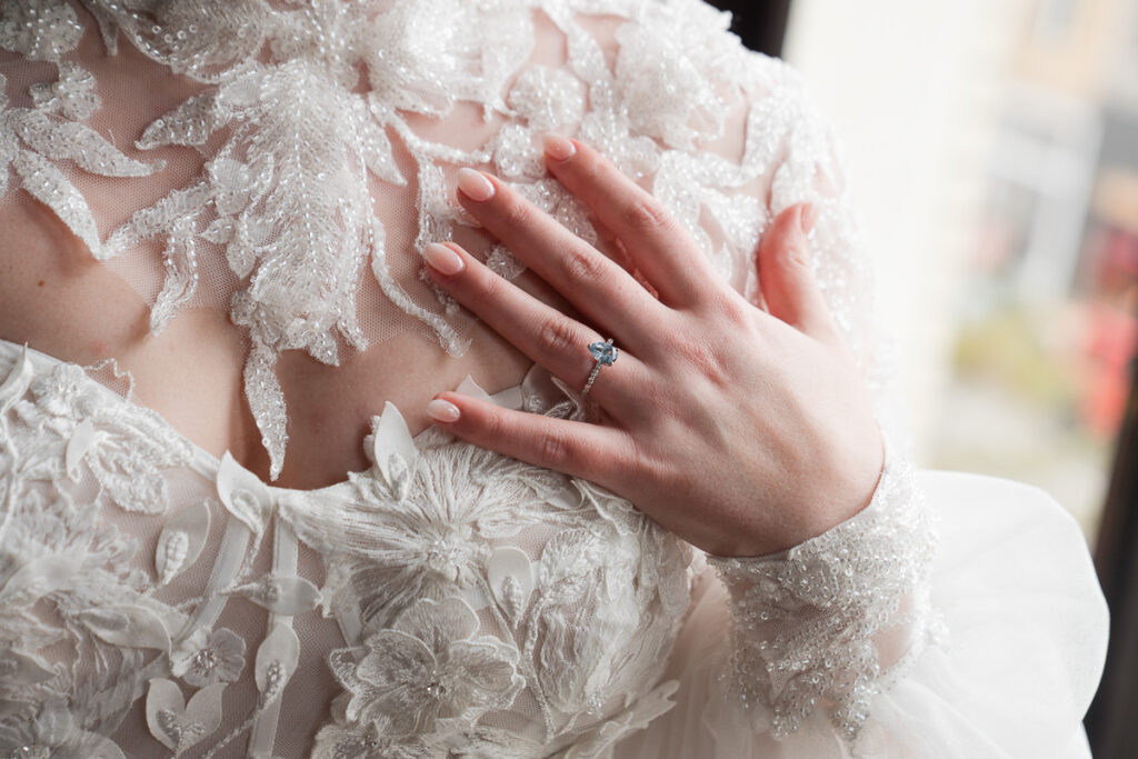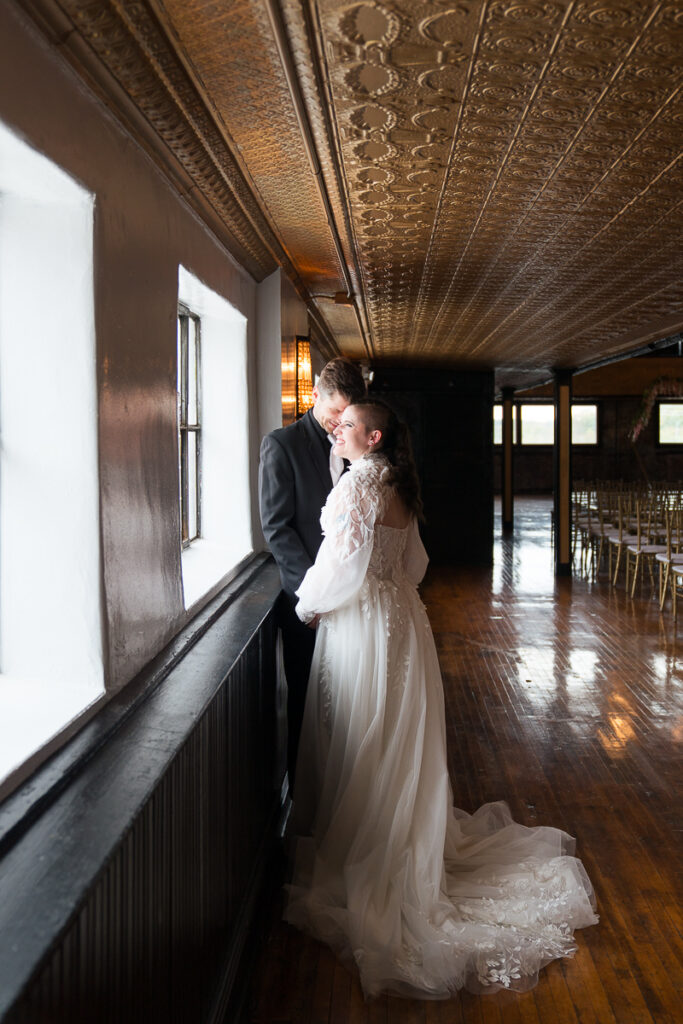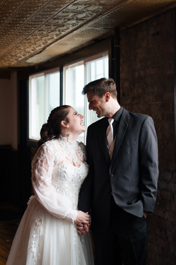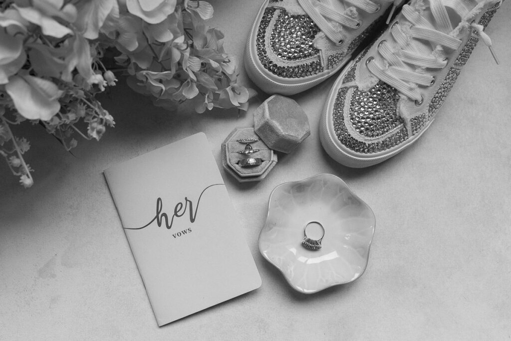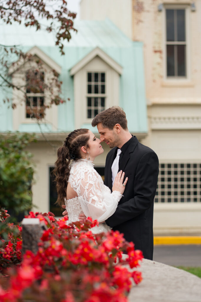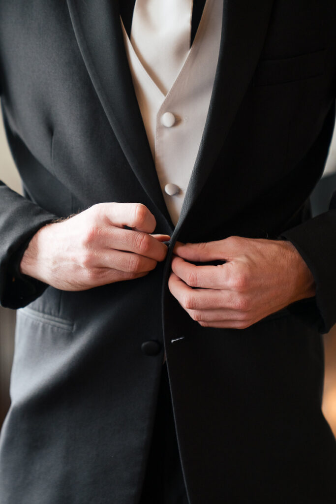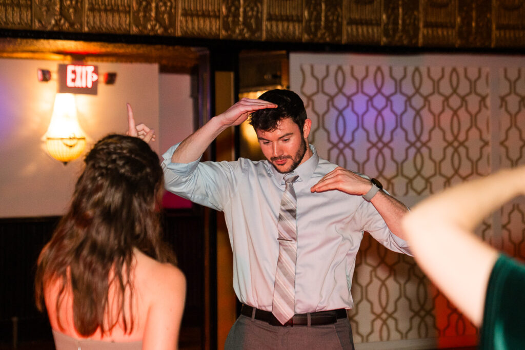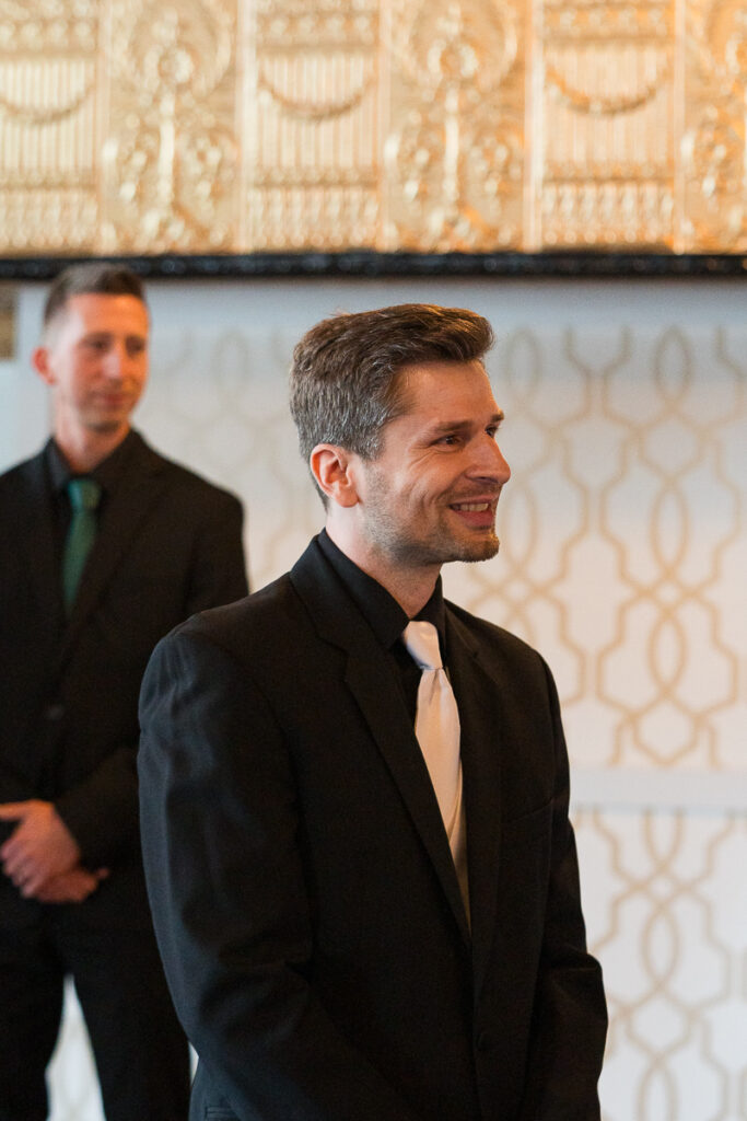 As I arrived at the venue, trick or treaters were mingling on the streets. The fall vibes were at peak level, like something out of a Hallmark movie. The day started as both bride and groom got ready with their bridal party. Julia’s bridesmaid’s hyped her up as she got dressed in a gorgeous corseted gown. Emerson gave his groomsmen customized Funko pops, a fun gift to thank them for the support!