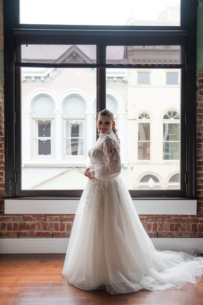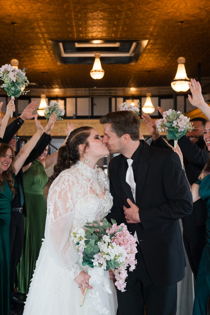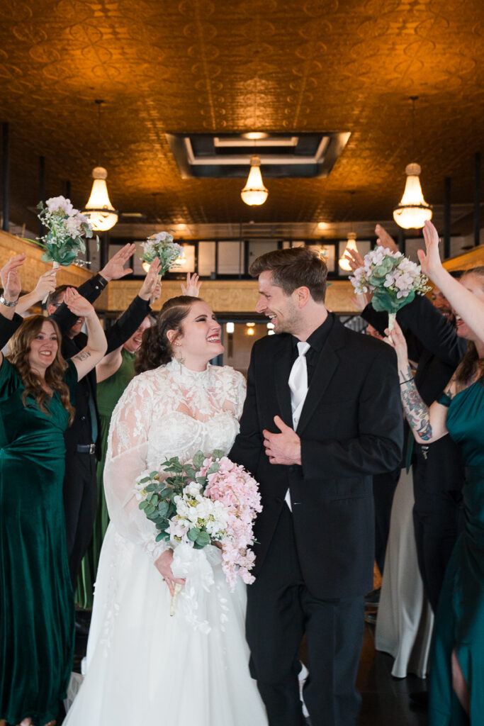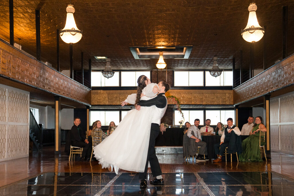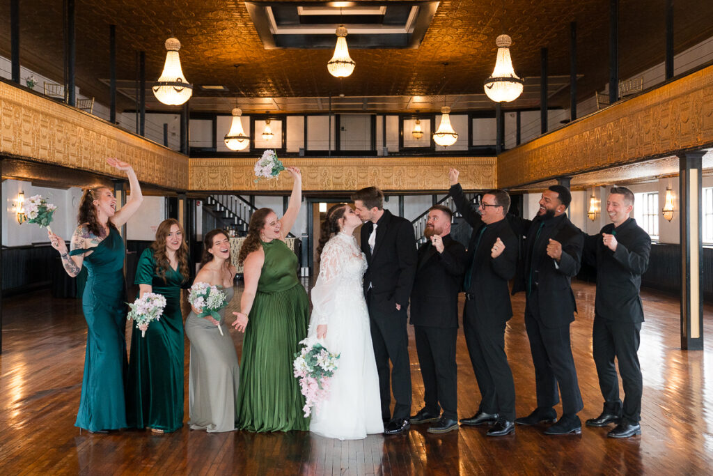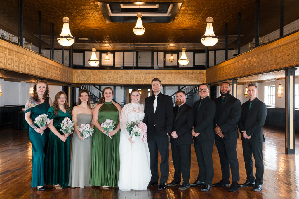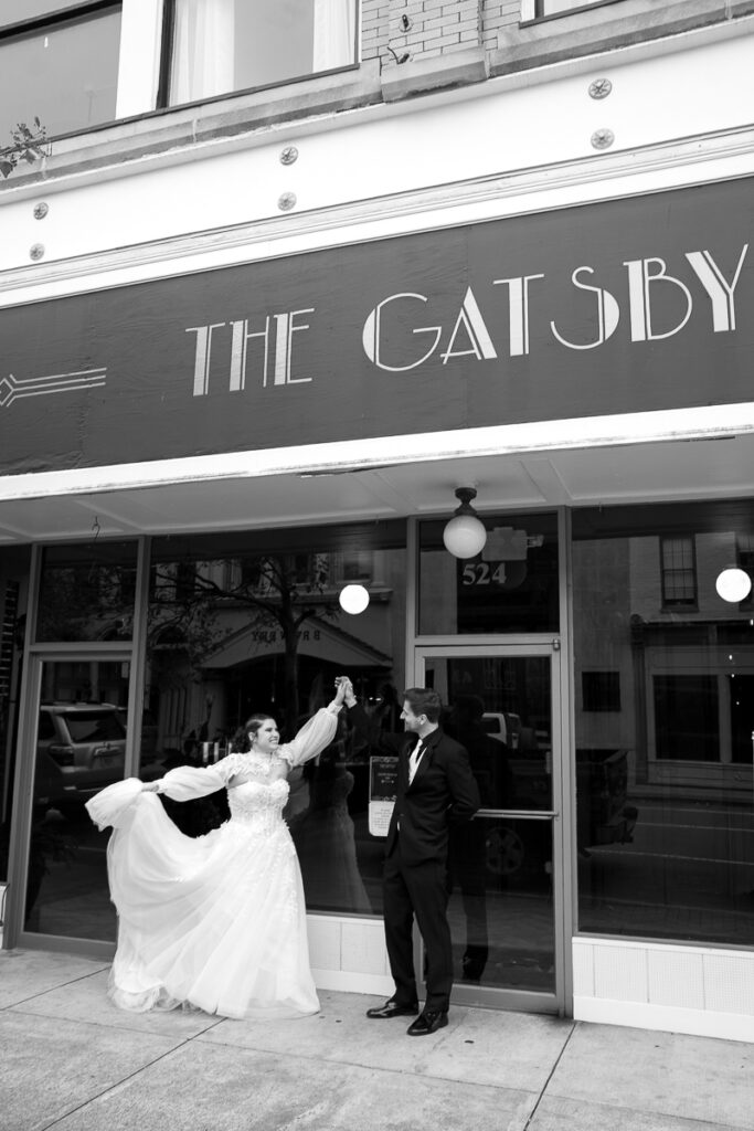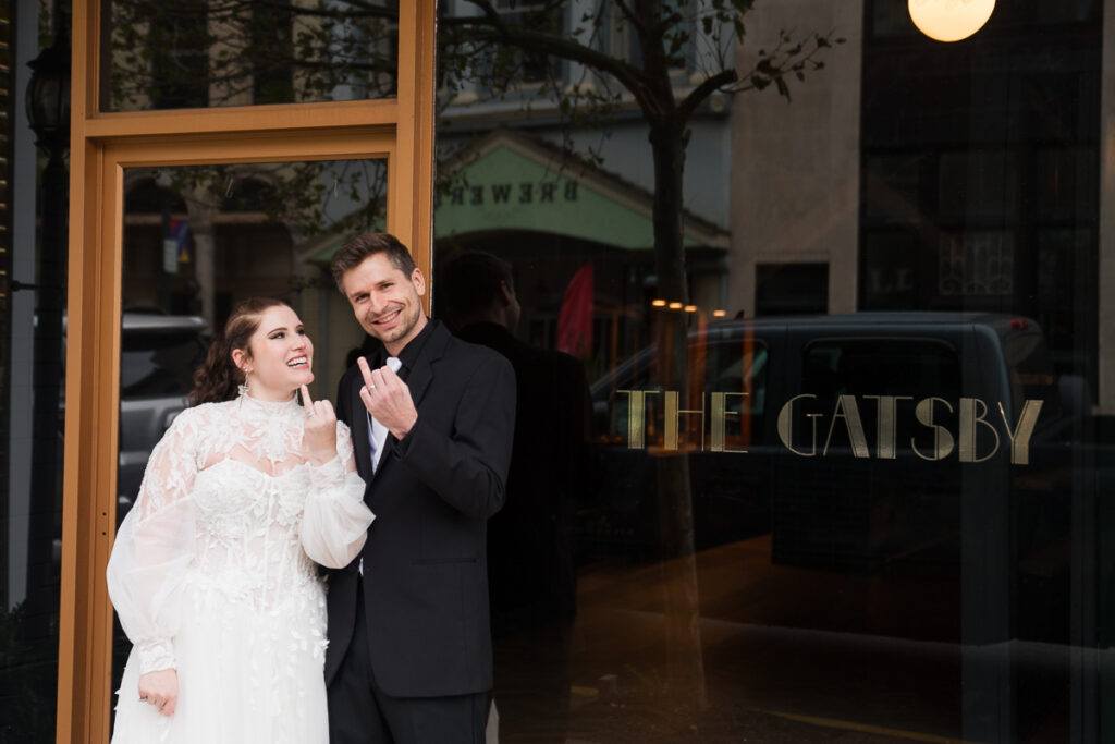 After the I dos, we took to the historic main street in Shelbyville for some outdoor photos. The fall weather was perfect and the leaves were just starting to change! As the bridal party entered, the celebration came alive with laughter, dancing, and heartfelt toasts. The Gatsby’s rich architectural details provided stunning backdrops for every photo.