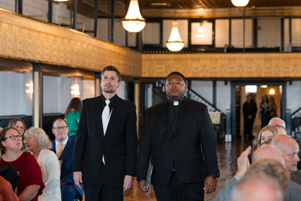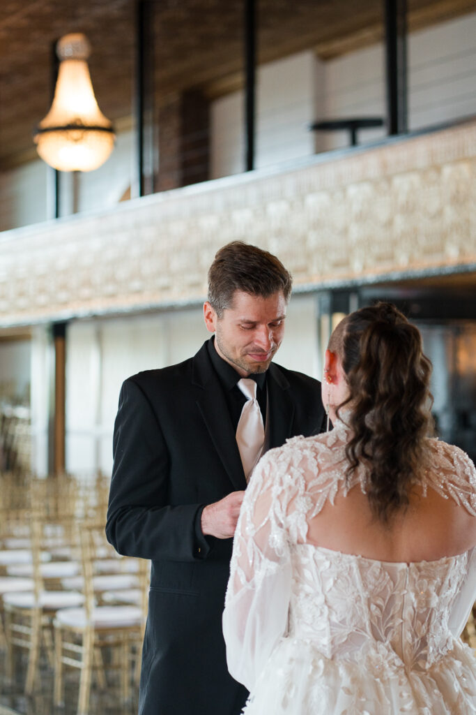 Before the ceremony, Julia and Emerson shared a private first look. The moment was full of emotion as they shared tear-filled vows. It was the perfect way to start their day. Afterwards, the bridal party took some time to take photos to celebrate the occasion. Then the couple was hidden away as guests began to arrive.