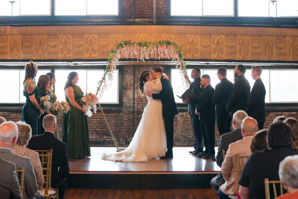 During the ceremony, Julia walked herself down the aisle while Emerson couldn’t hold back his smile. Officiated by a friend, the ceremony was personal and perfectly celebrated their love story. After exchanging rings, they sealed the deal with a kiss and were officially announced as husband and wife.