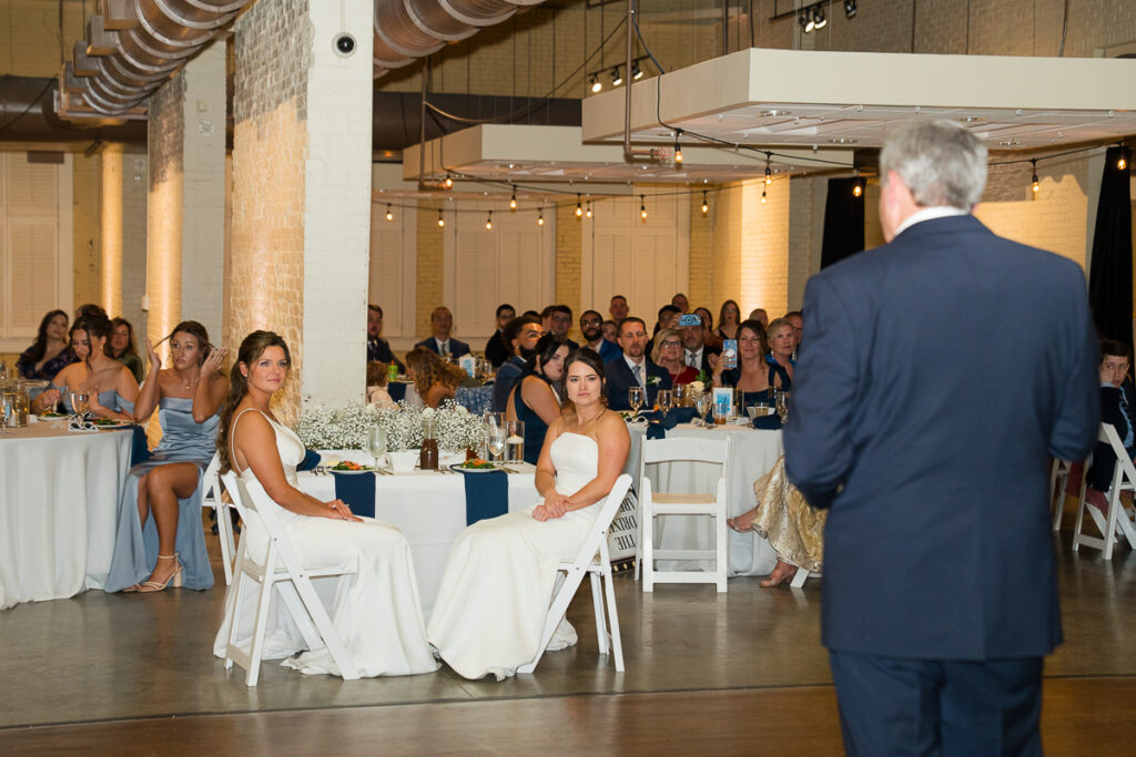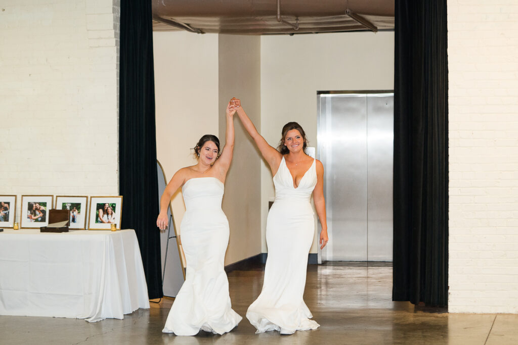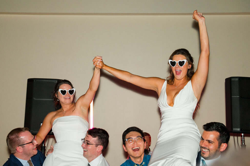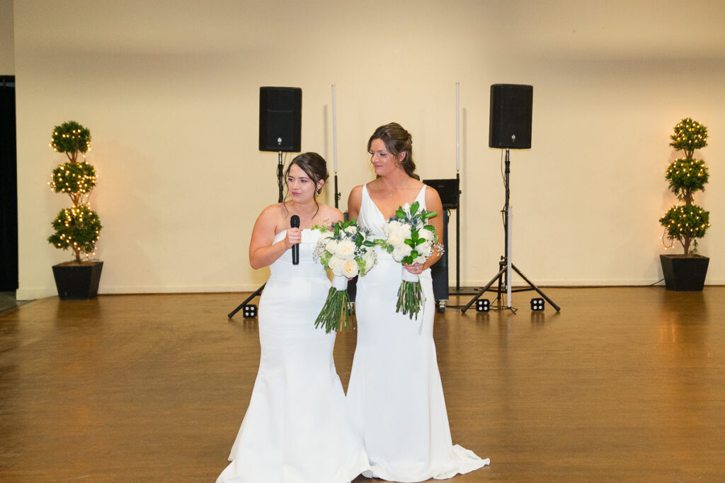 Transitioning into the reception, the energy shifted to lively and joyful. Guests cheered as the newlyweds entered the room, clearly ready to celebrate. After heartfelt toasts and sweet dances with their dads, it was time to hit the dance floor. When my time was up, I almost didn’t want to leave! These brides know how to throw a party!
