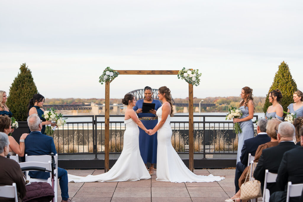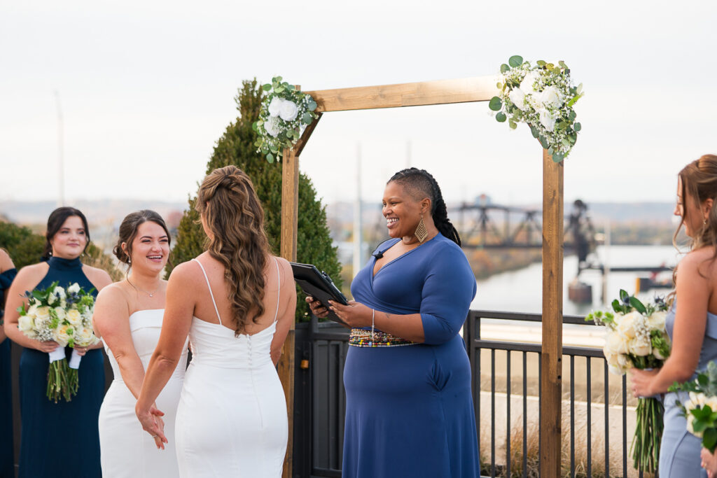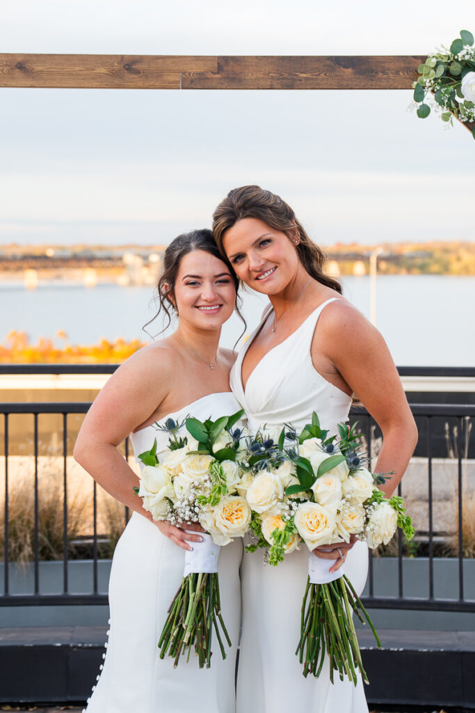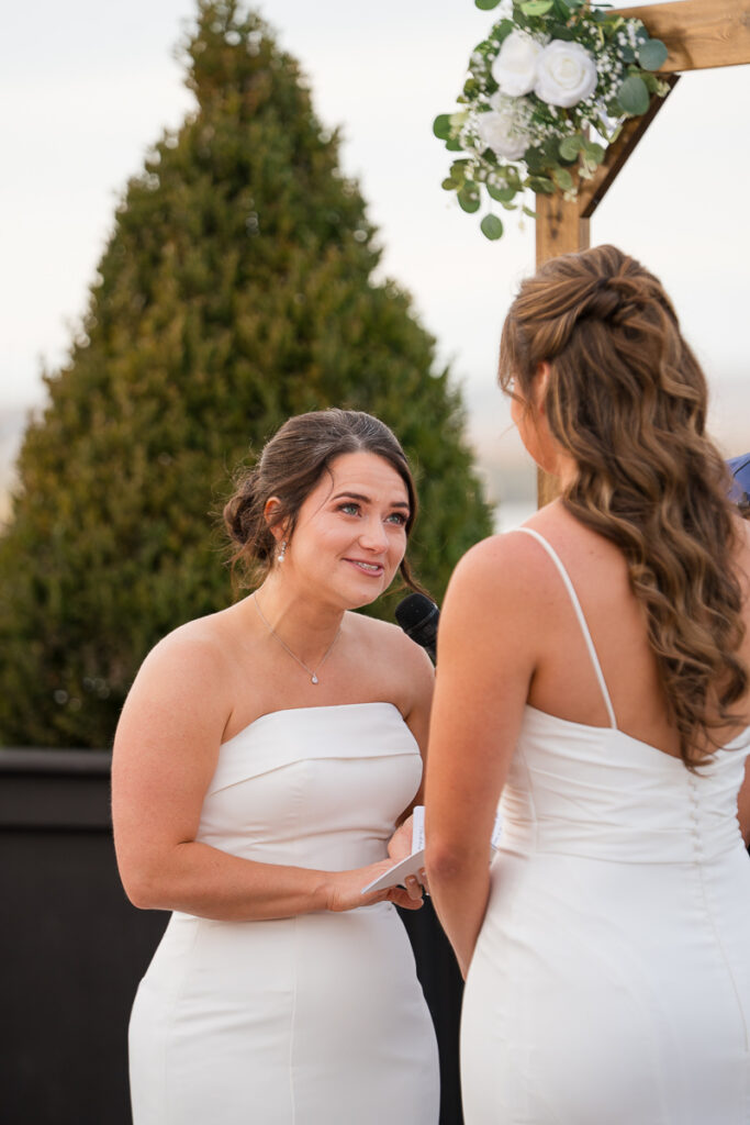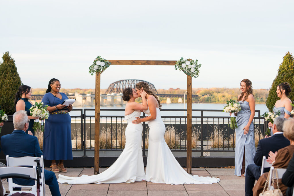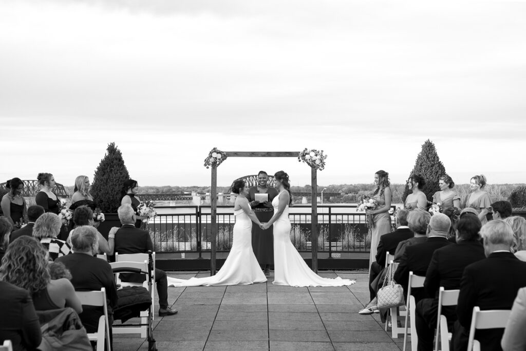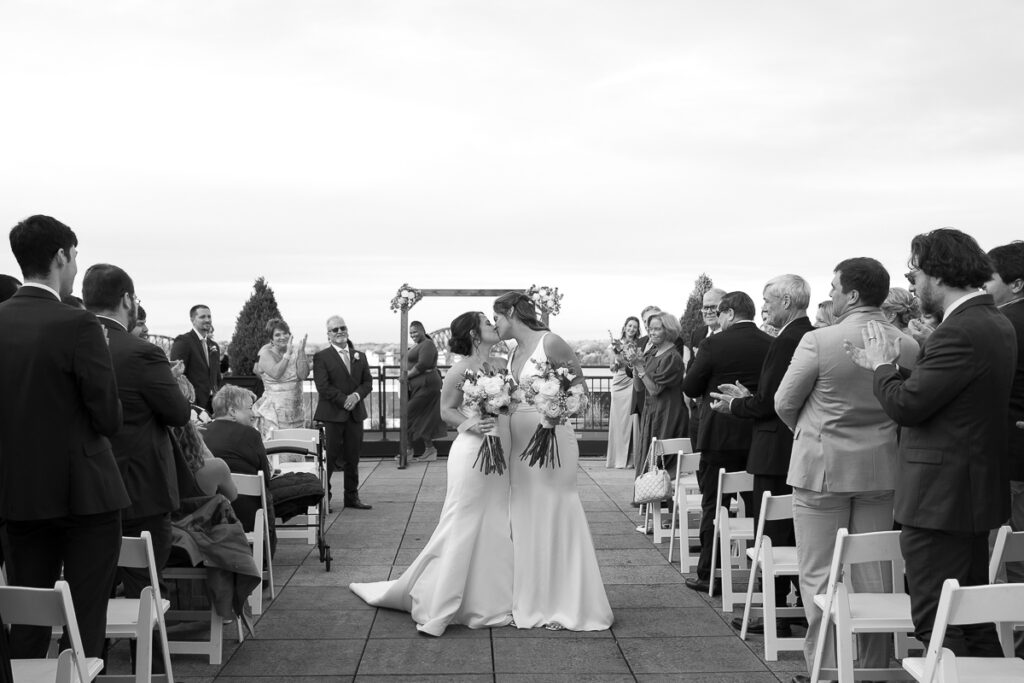 As guests arrived, they were greeted with heartfelt personal touches that reflected Madison and Brittany’s story. Guests gathered on the rooftop for the ceremony to begin. Despite some wind, it was gorgeous weather for a November wedding! Personal vows brought the crowd to tears, capturing the love Brittany and Madison share. They sealed the deal with a kiss and were announced officially married!