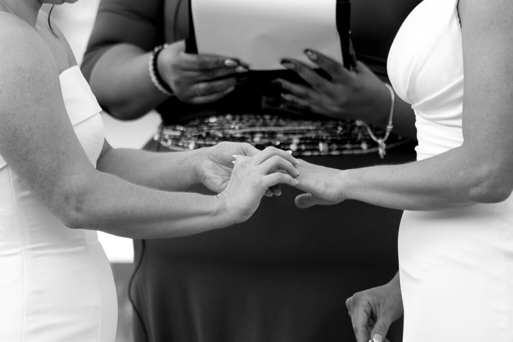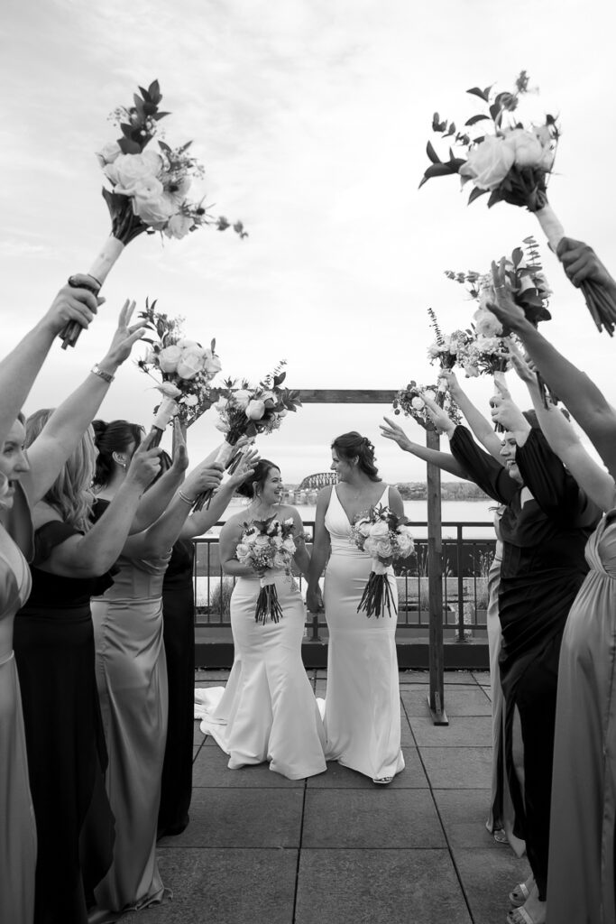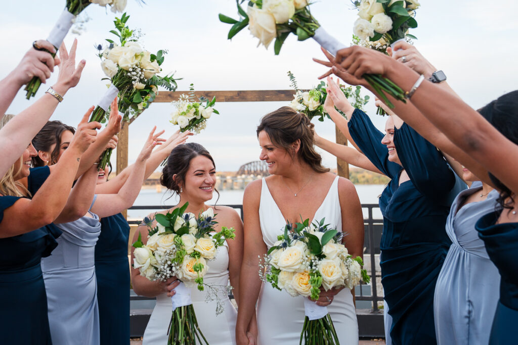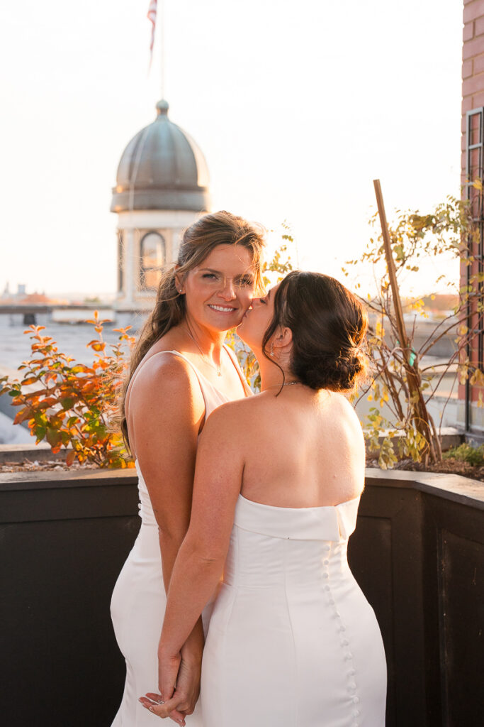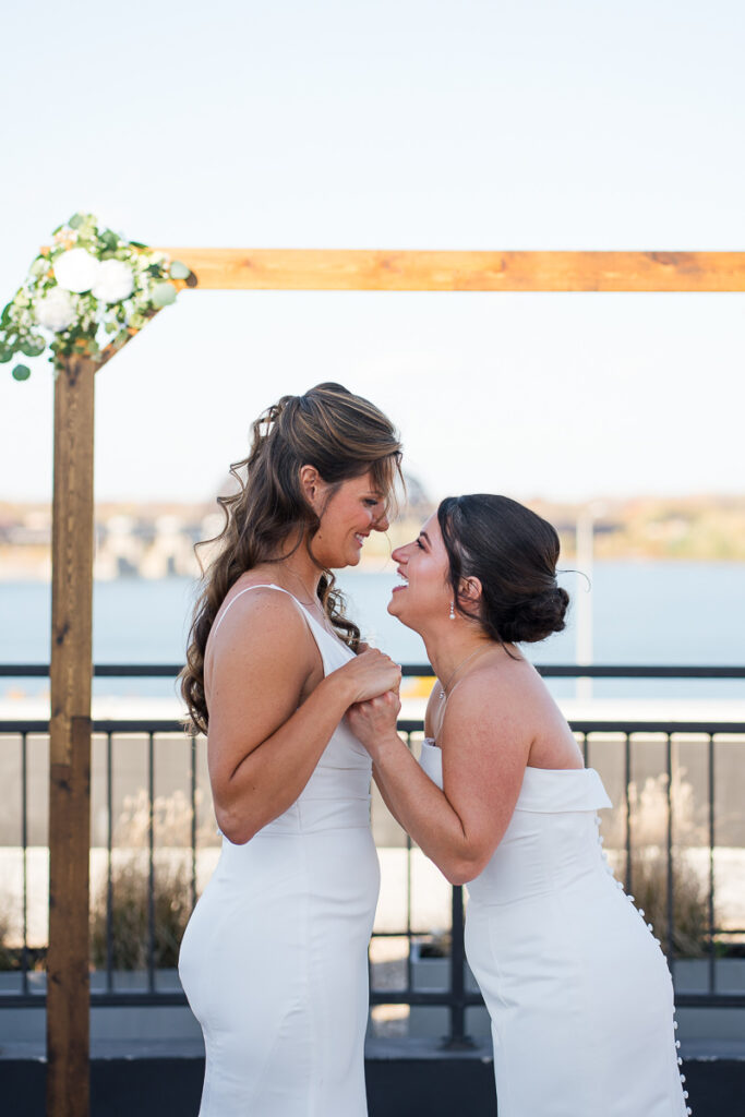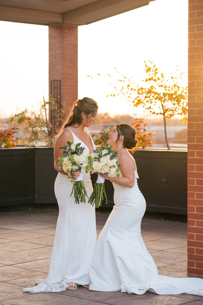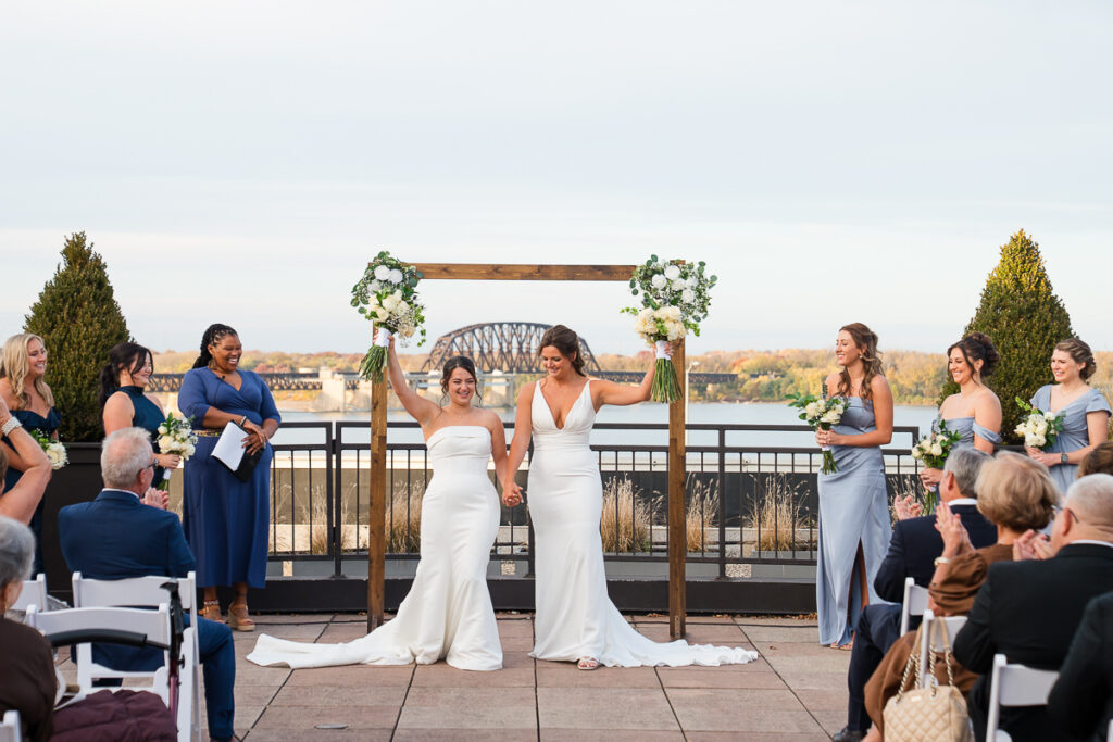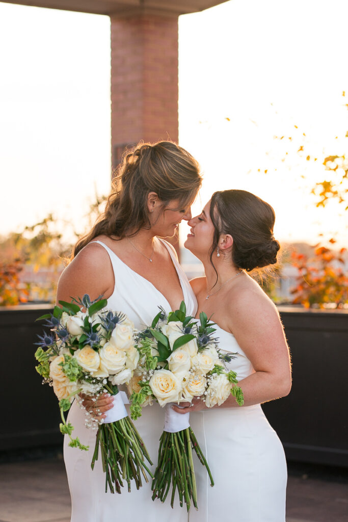 As guests arrived, they were greeted with heartfelt personal touches that reflected Madison and Brittany’s story. Guests gathered on the rooftop for the ceremony to begin. Despite some wind, it was gorgeous weather for a November wedding! Personal vows brought the crowd to tears, capturing the love Brittany and Madison share. They sealed the deal with a kiss and were announced officially married!