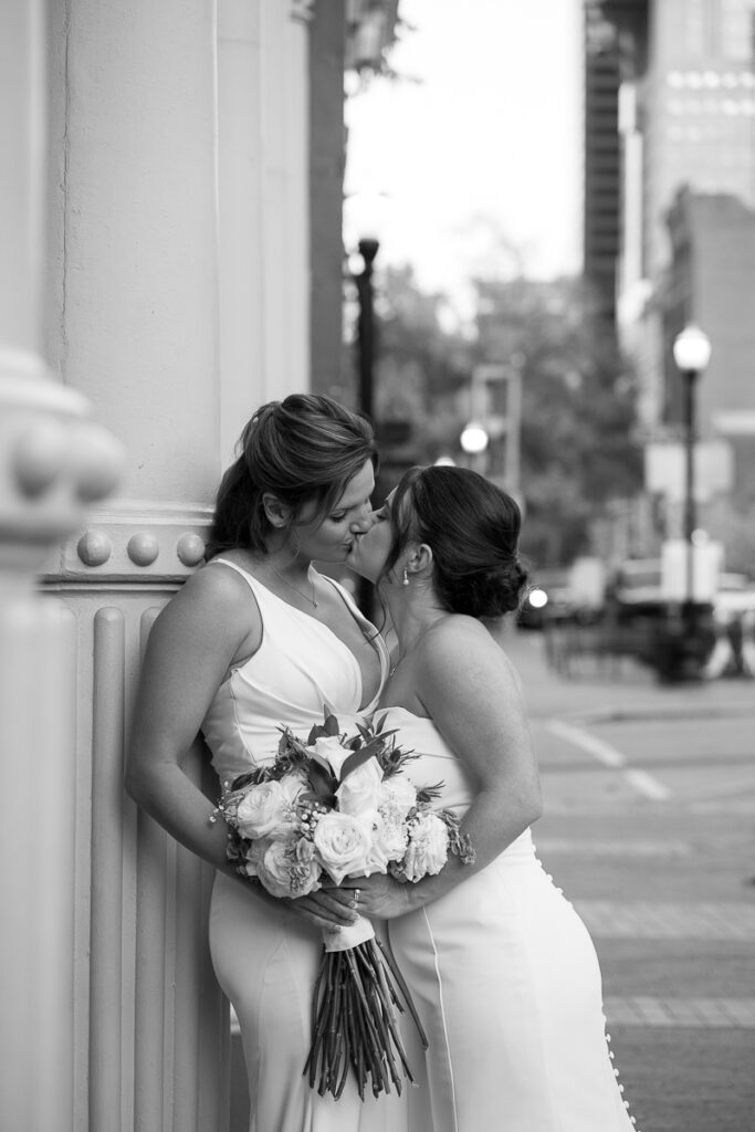 From the rooftop portraits overlooking downtown Louisville to candid laughter on the dance floor, each image captured their authentic connection. This Frazier History Museum wedding offered a unique mix of sophistication and storytelling. It gave Madison and Brittany a space to celebrate their love surrounded by all their favorite people and lots of joy.