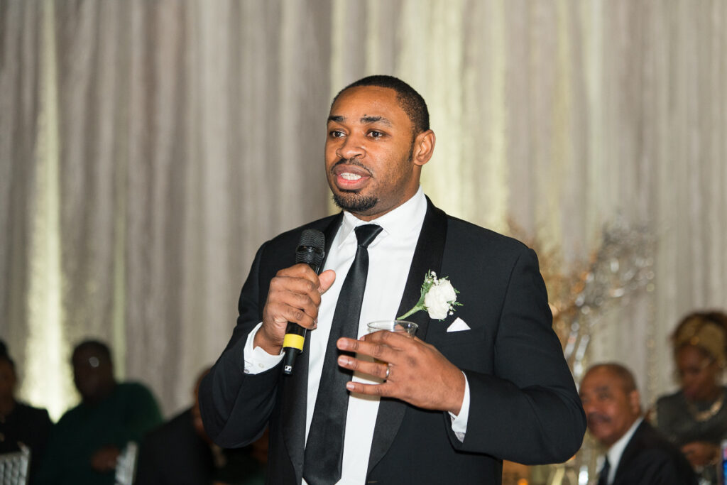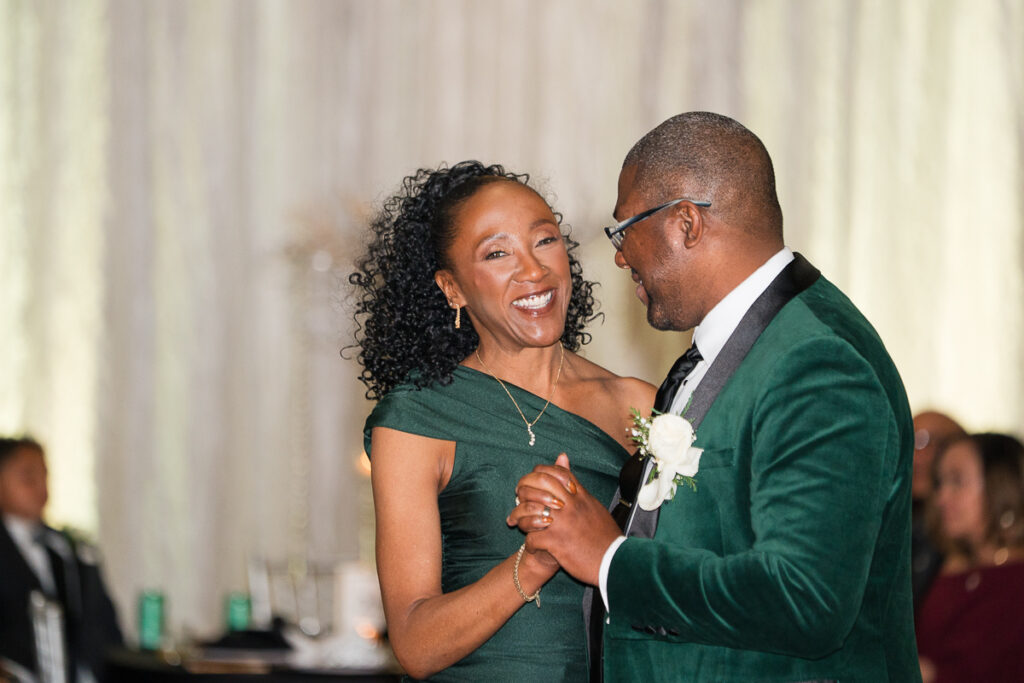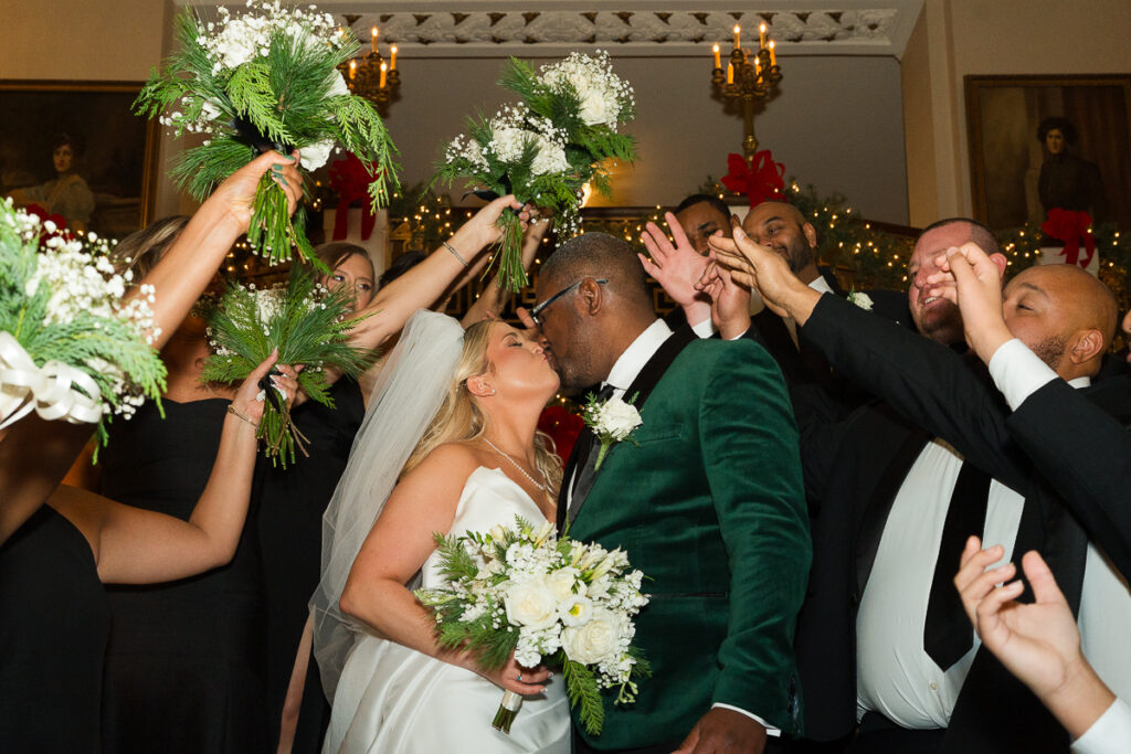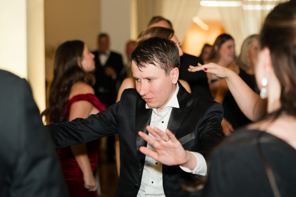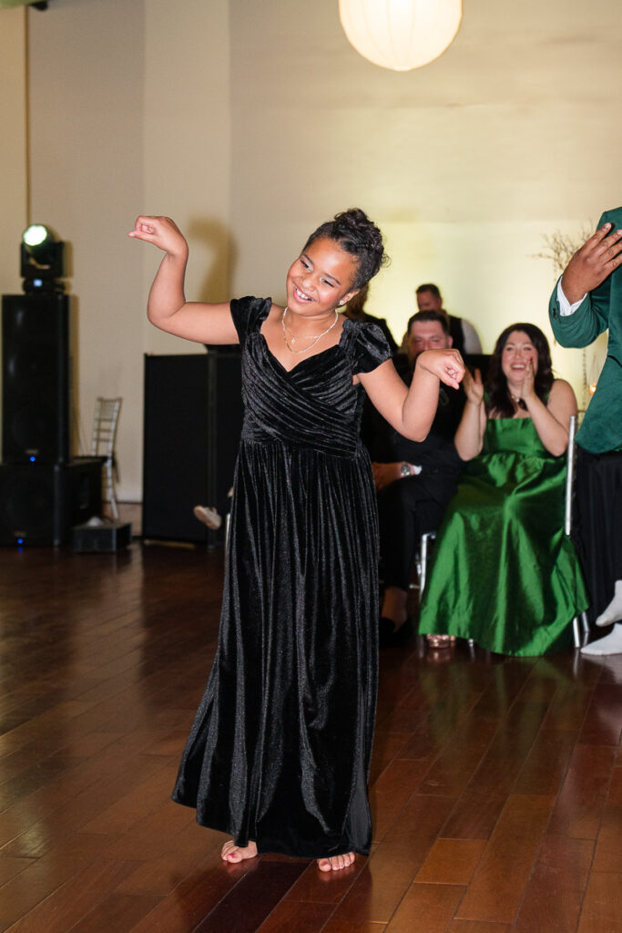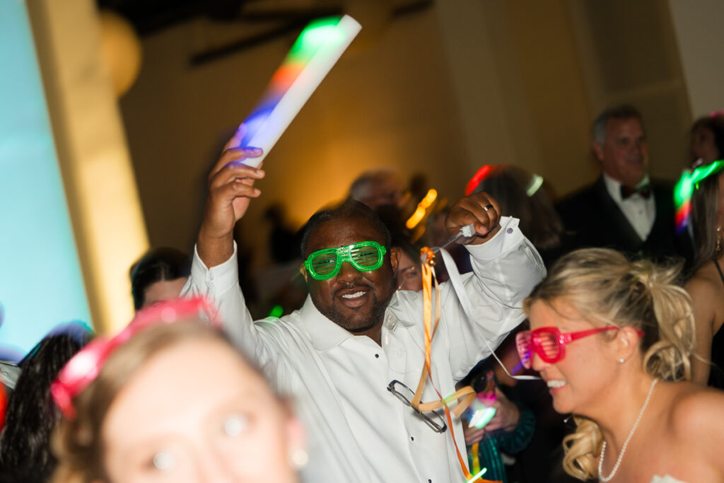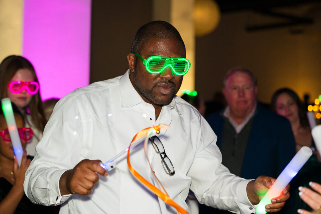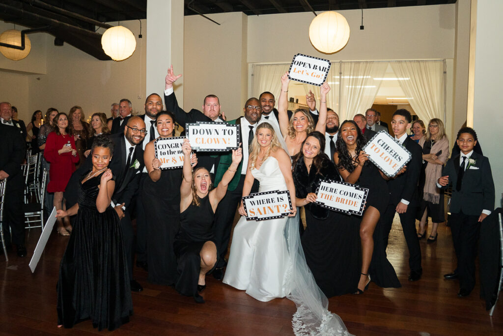 As evening arrived, the wedding transformed into the ultimate New Year’s Eve party. Guests filled the dance floor with nonstop energy. Every detail felt intentional, from the elegant décor to the playful nods to the holiday.