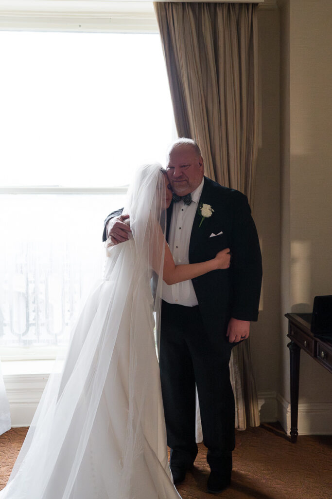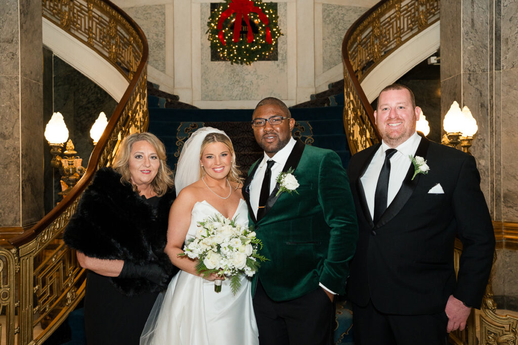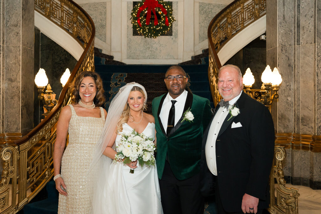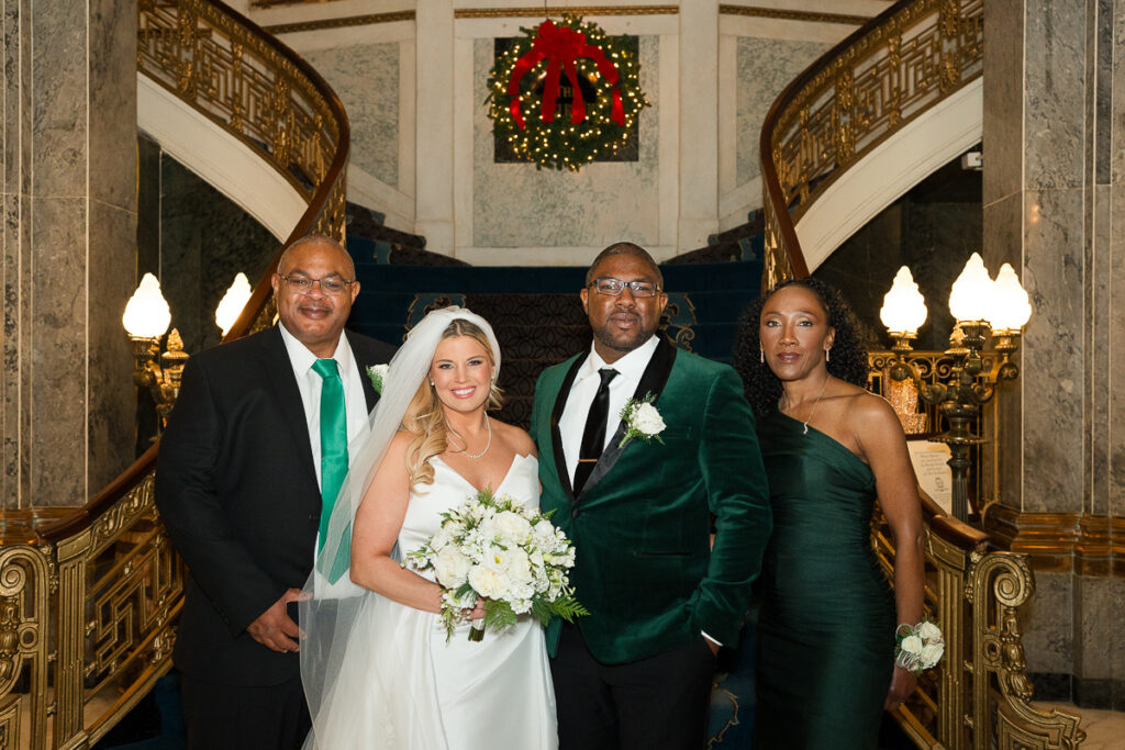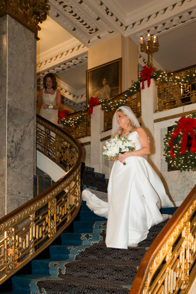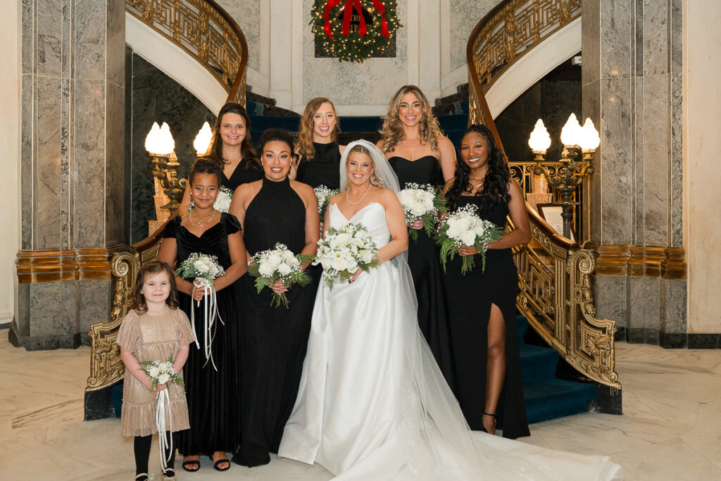 The celebration started with quiet, meaningful moments. Soft light filled the getting-ready space as Haley slipped into her dress. Emotions ran high. Meanwhile, Quincie shared laughs with friends, the excitement building with every passing hour. When they finally saw each other, on the grand staircase of the Seelbach, the energy shifted. Smiles widened. Nerves faded. The day suddenly felt real.