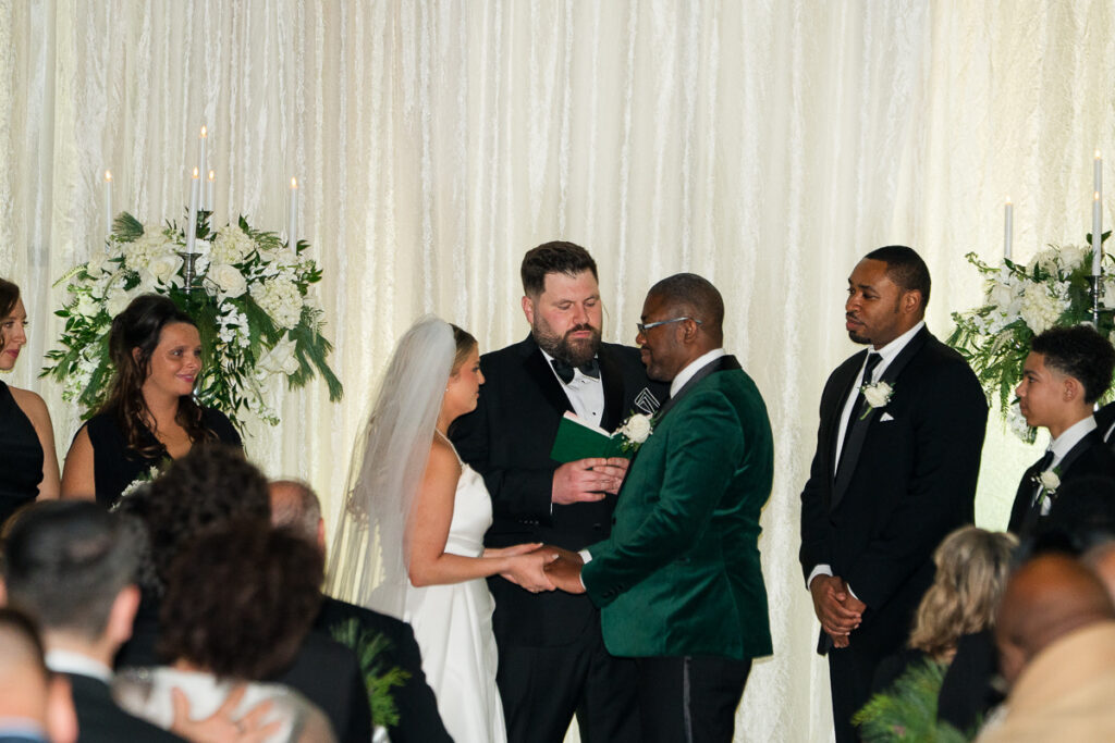 Their ceremony was heartfelt and personal. Warm words echoed through the space as they exchanged rings, fully present and completely in love. As the final “I do” was spoken, cheers followed. The celebration officially began.