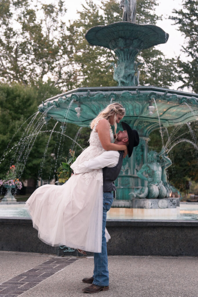 At the end of the night, we ushered the couple out with a sparkler send off (although it wasn’t quite dark yet). This Louisville Wedding Photographer is going to have to do some editing magic to make those sparkler photos really pop. With a little bit of extra time in their contract, the bride and groom brought me to Historic Downtown Madison for a few more photos. These ended up being some of my favorite of the night!
