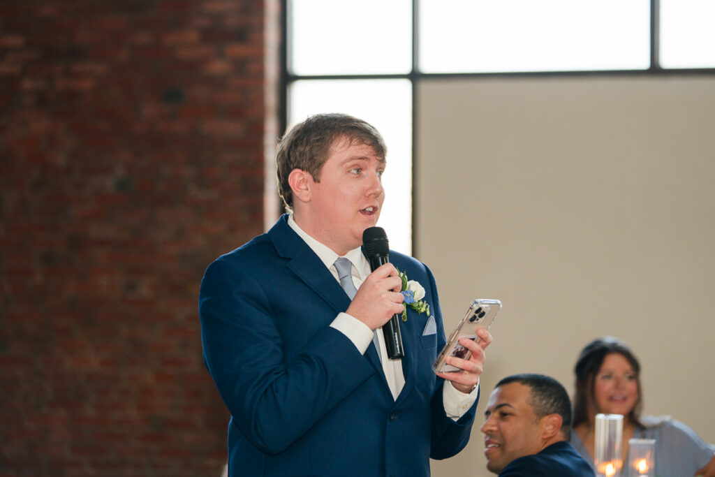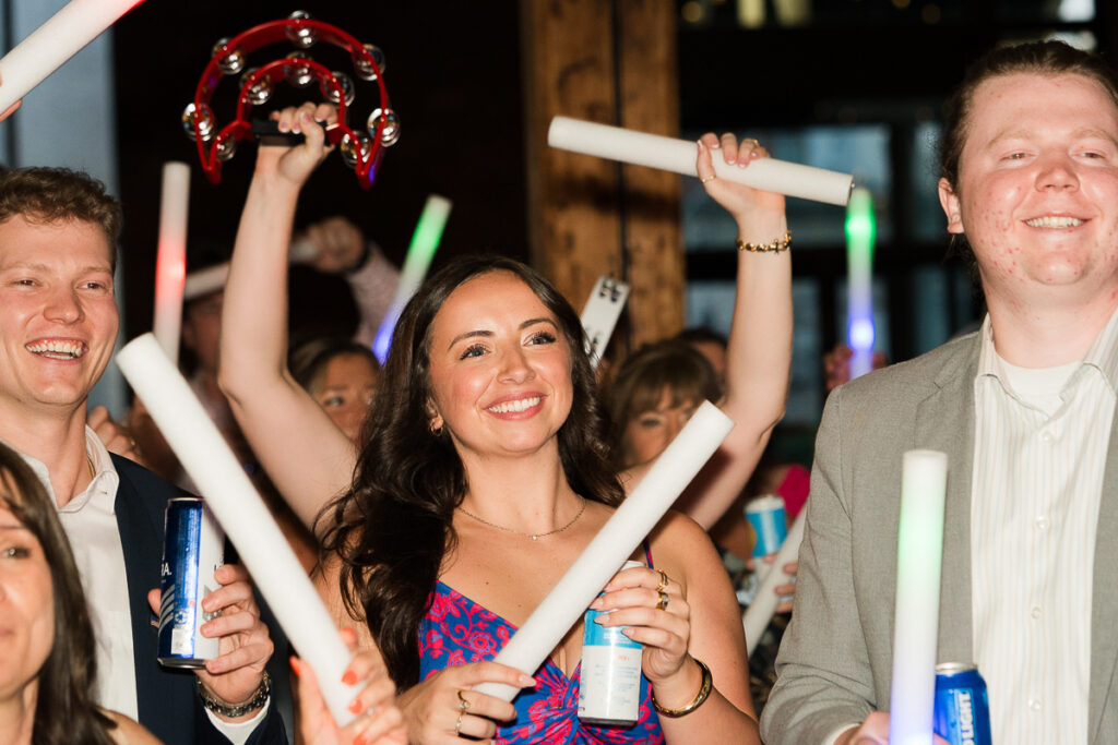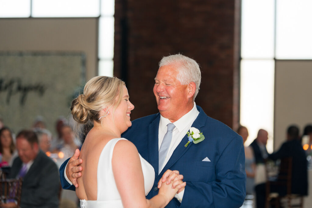 Guests enjoyed delicious food and emotional toasts from family and friends. After sneaking away for some sunset photos, the couple cut their cake made by a friend and then it was time for the party! The dance floor stayed packed all night long. Spin Around Sound DJ knows how to keep the party going! Every joyful moment showed the magic of a summer wedding at The Refinery.