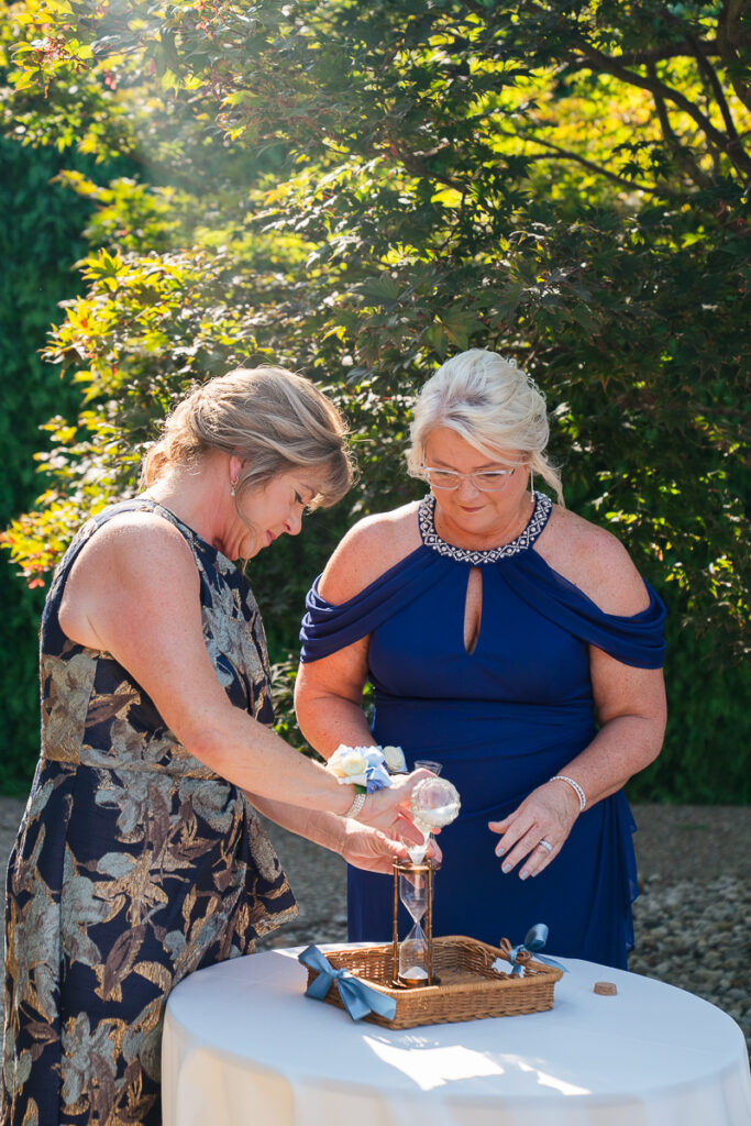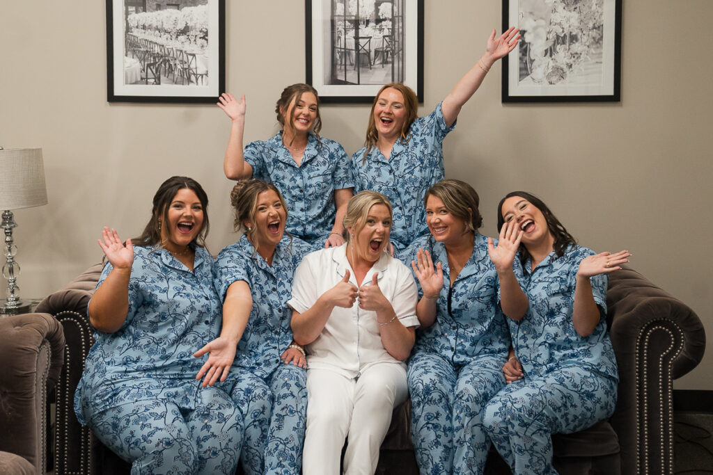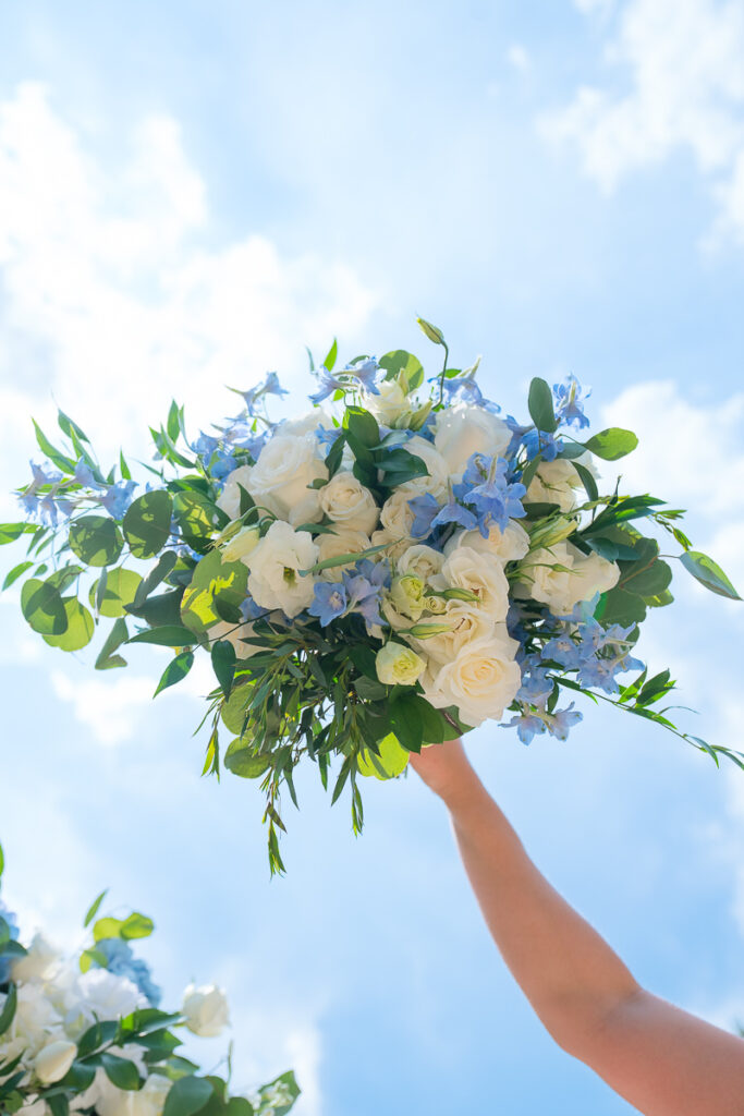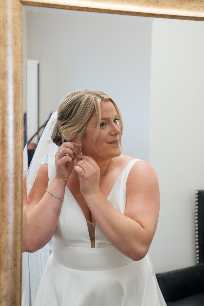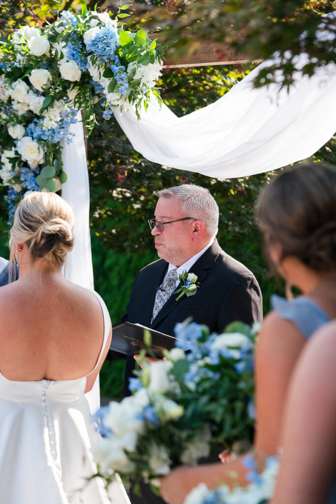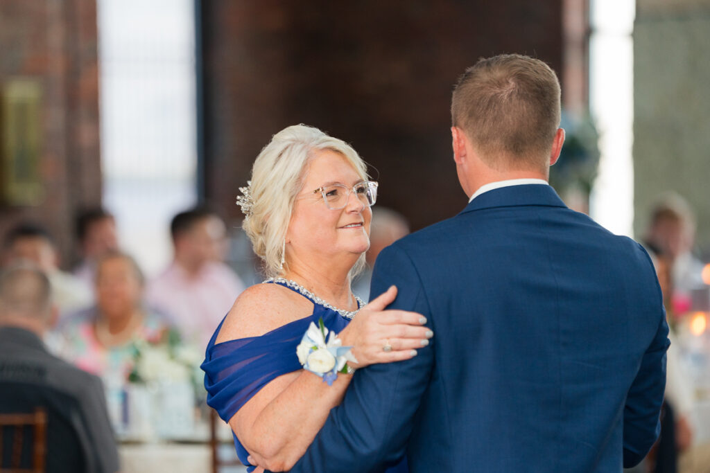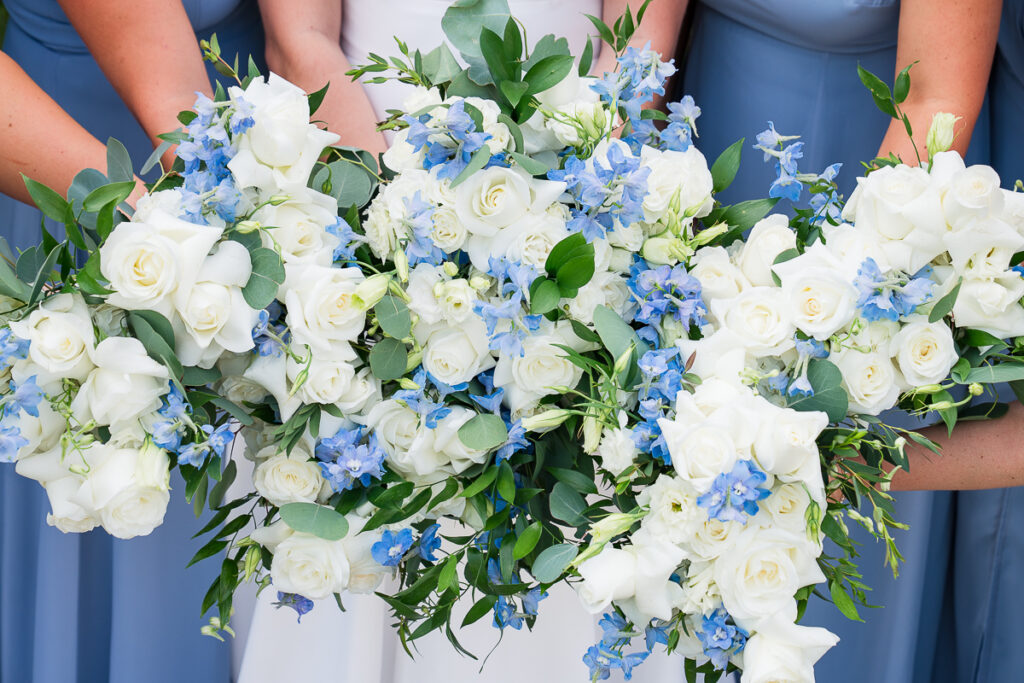 The couple chose a light blue and navy color scheme with gold and ivory accents. Ashley looked absolutely stunning in her satin gown. Tyler looked equally handsome in a navy blue suit. After a fun morning of getting ready and a heartfelt first look, we spent some time taking photos around the venue.