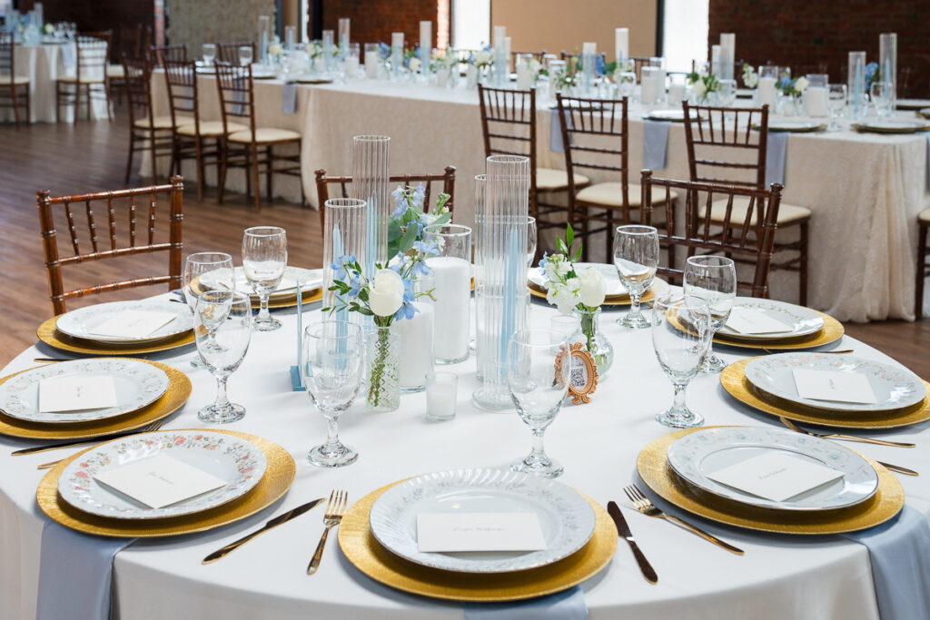 After the ceremony, guests moved into the reception space, a much needed respite from the heat. The celebration came alive with energy. Ashley and Tyler decorated with soft florals, mix and match plates, gold cutlery, and handwritten letters for each guest as name cards. The details made the venue feel warm and inviting. I loved the personal touches!