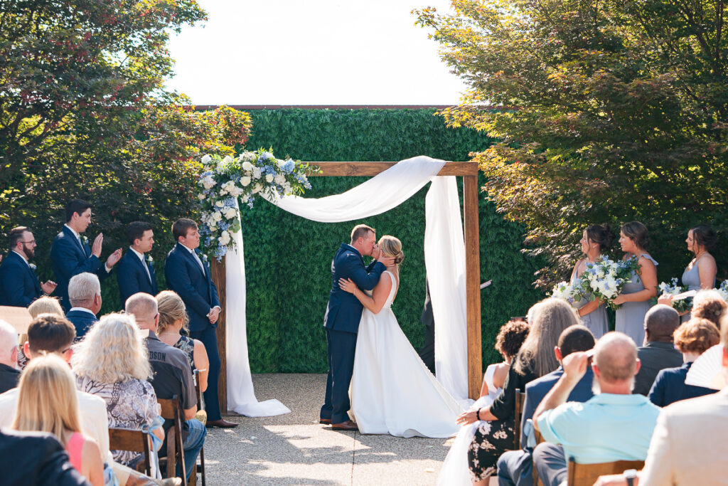 Man oh man, it was a HOT one! But the August heat did not stop the happy couple from tying the knot. In a short and sweet ceremony officiated by the bride’s uncle, Tyler and Ashley were announced officially husband and wife in the beautiful courtyard.