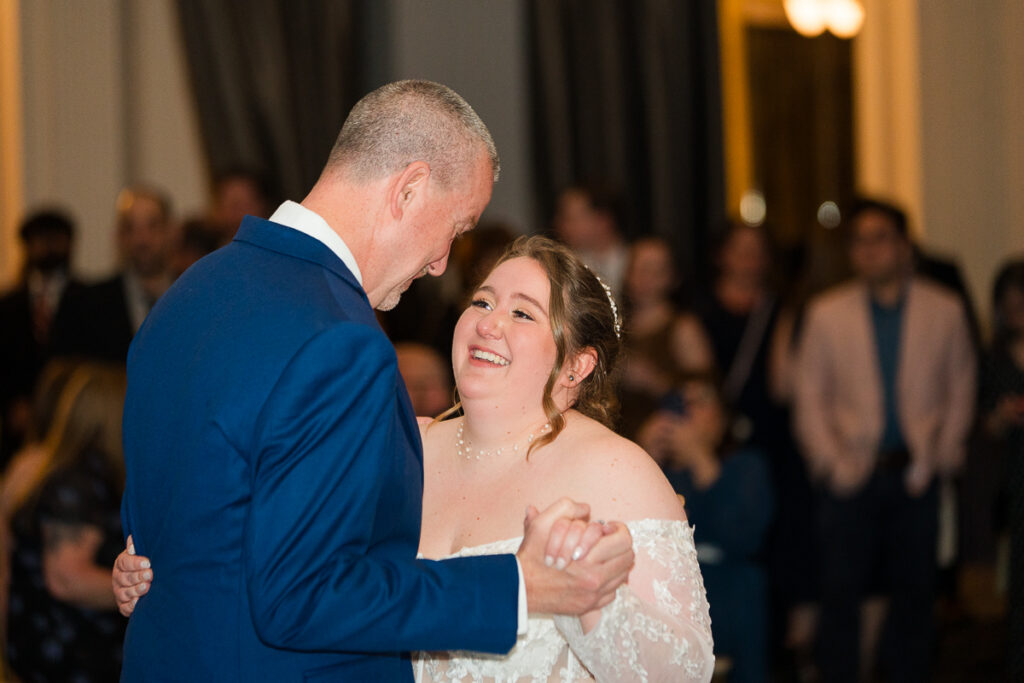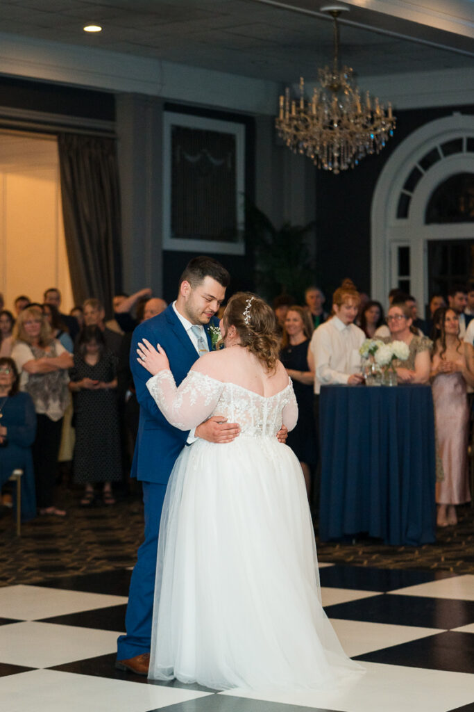 Afterward, the reception started and the celebration really began. After a lively cocktail hour and delicious dinner, Caitlin and Phil took the dance floor. They shared their first dance as husband and wife, while family and friends beamed from all around.