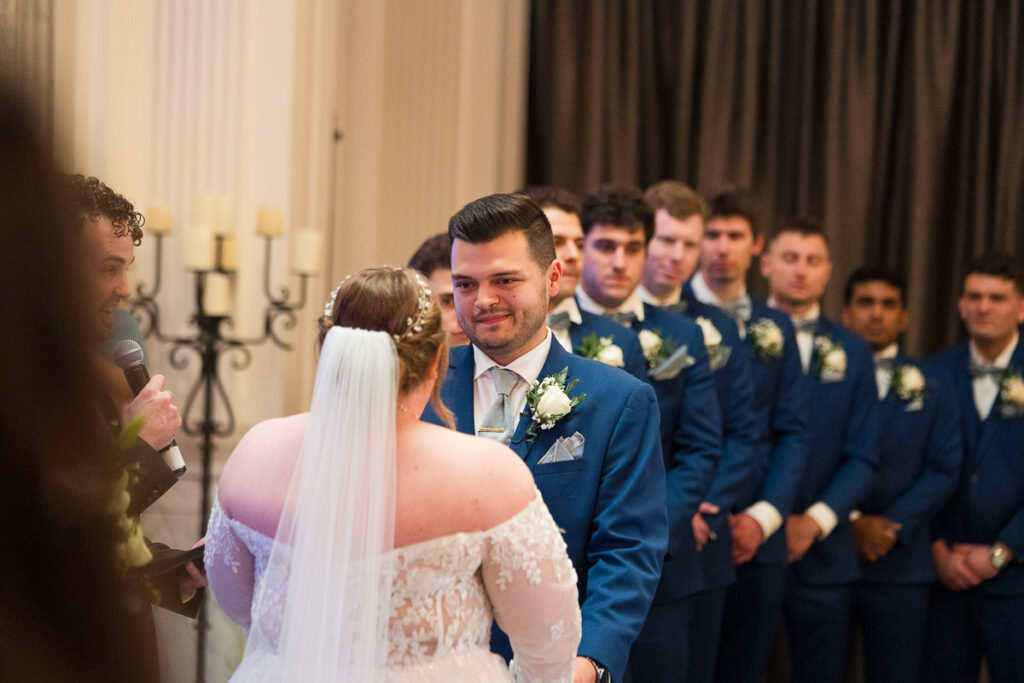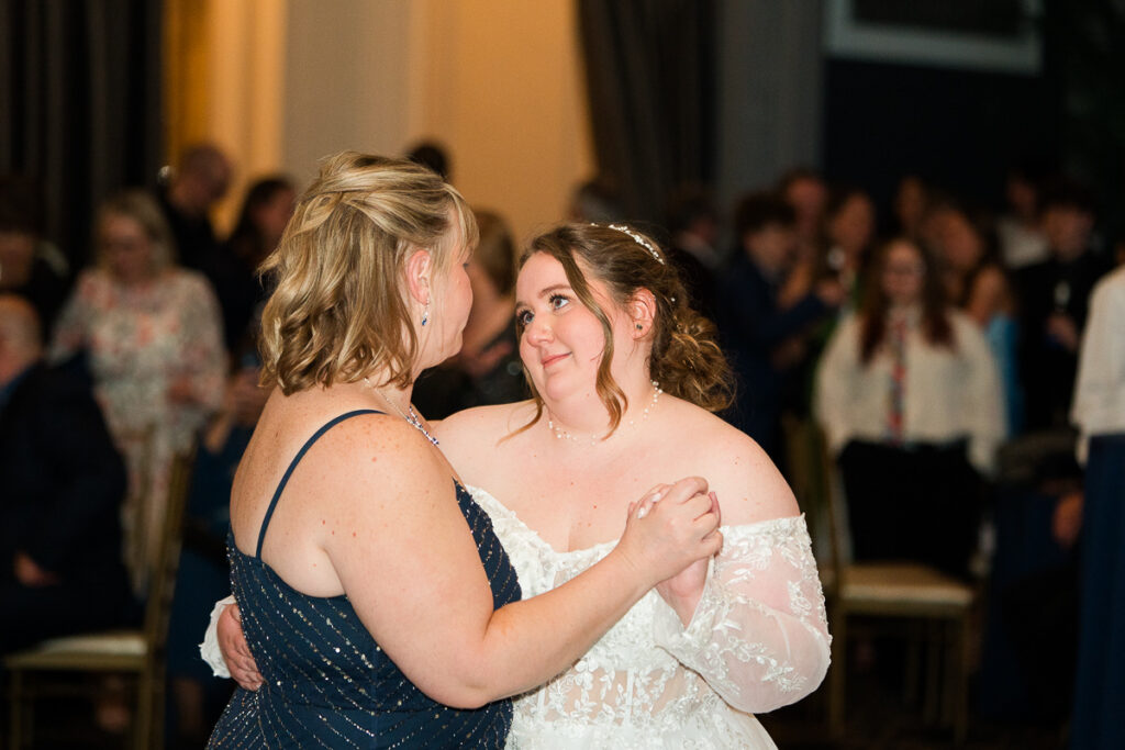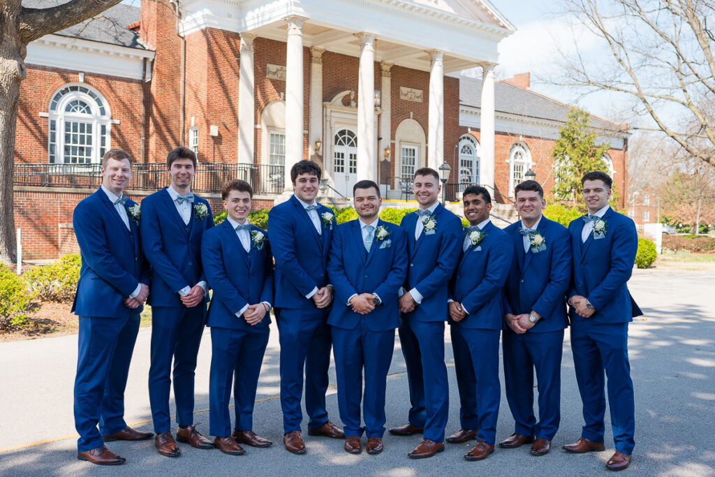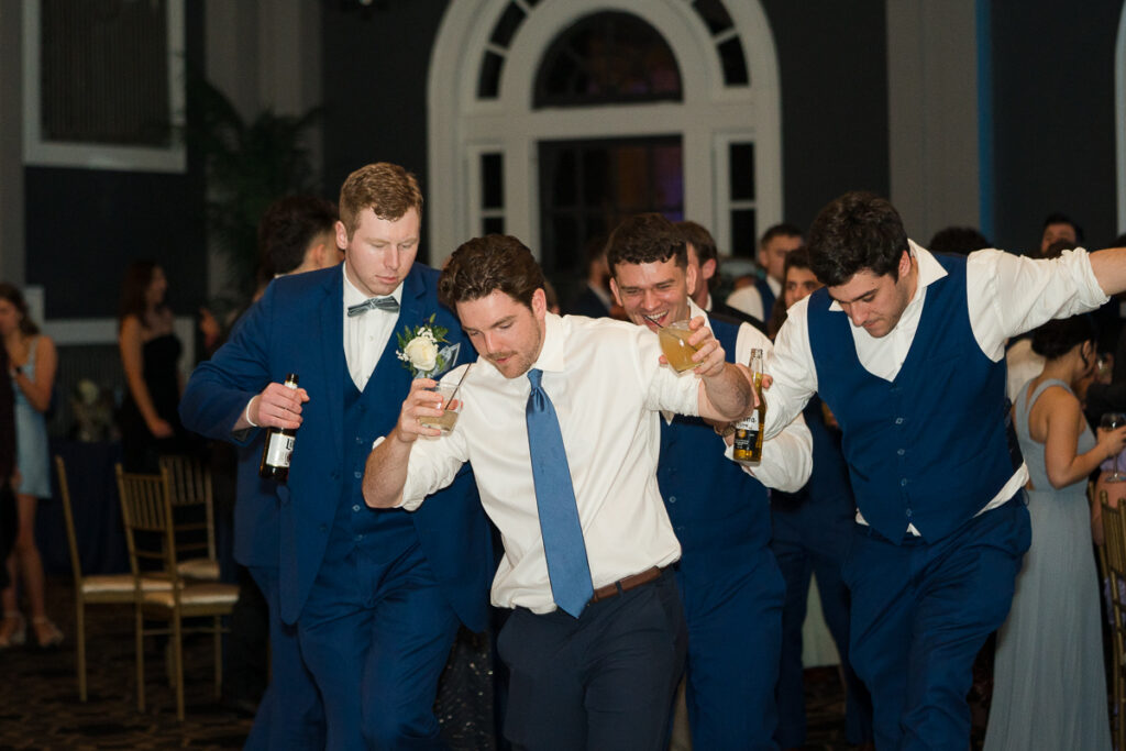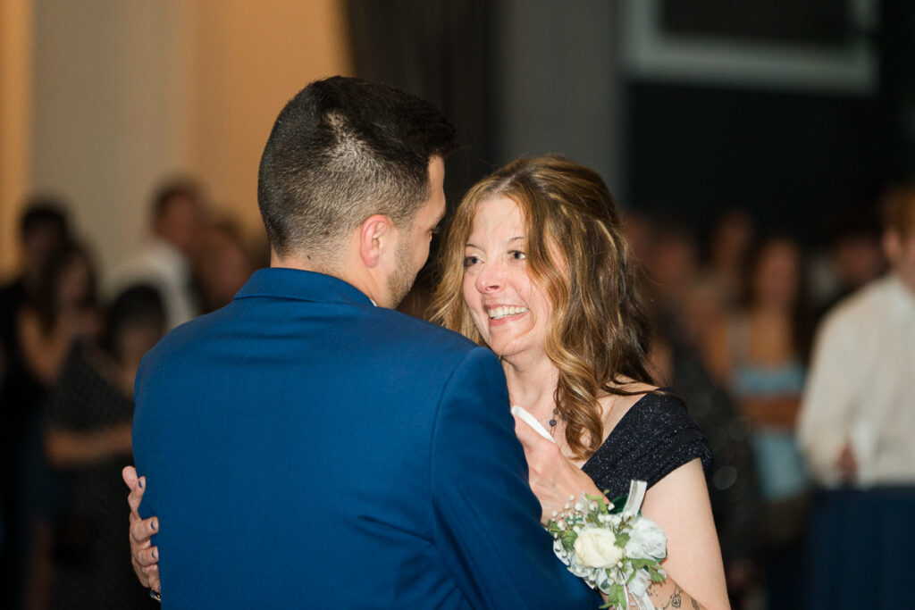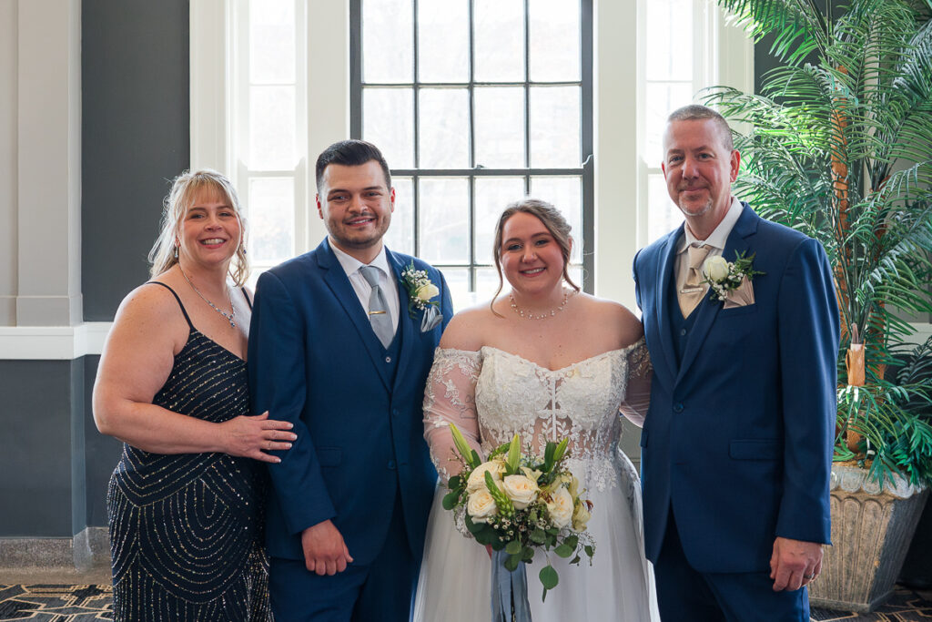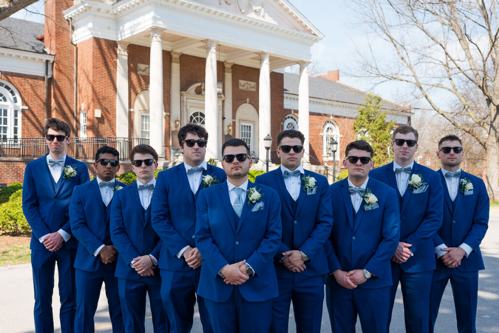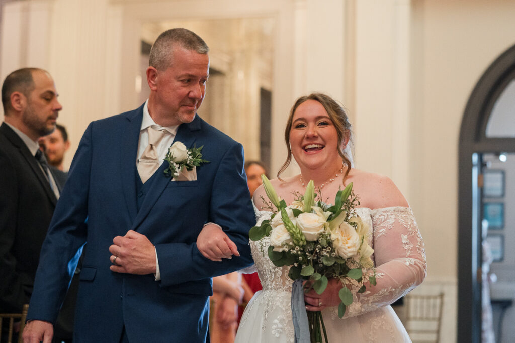As always, The Olmsted was a perfect backdrop for a wedding. Natural light poured through the windows all day. As a result, every moment felt airy and bright. Caitlin wore a beautiful gown with lace sleeves and subtle sparkle. Meanwhile, Phil looked handsome in a classic navy tux. The bridal party supported in shades of blue.