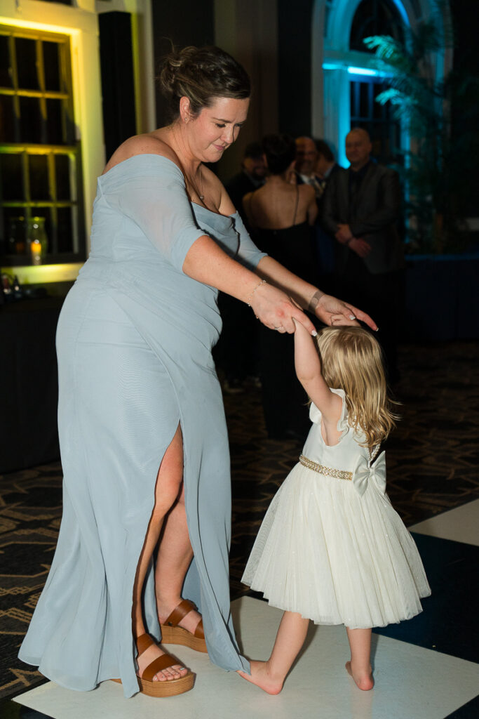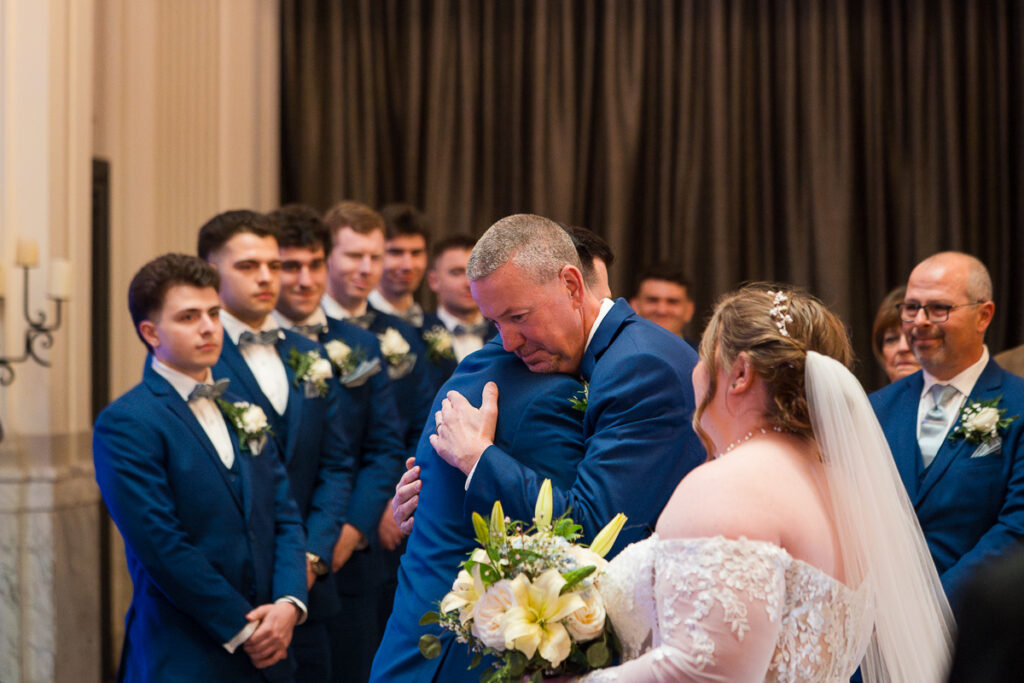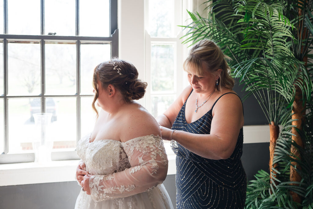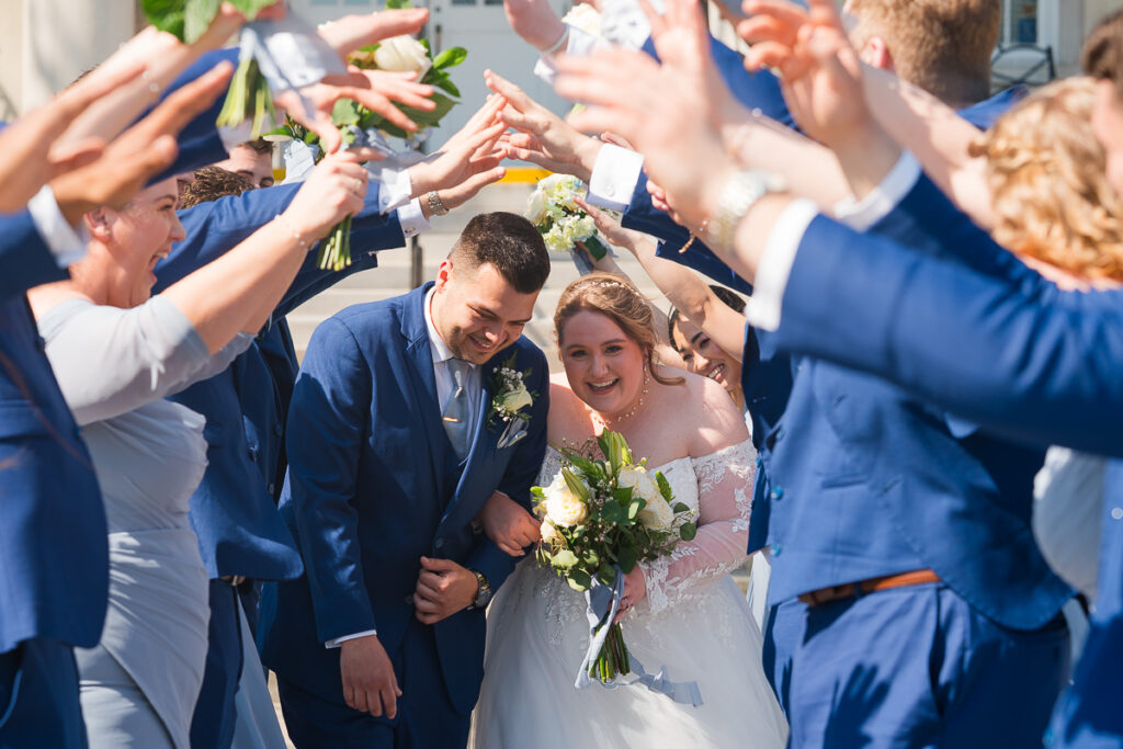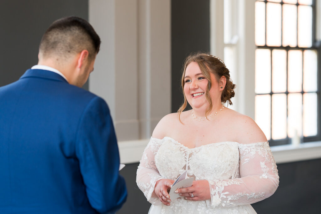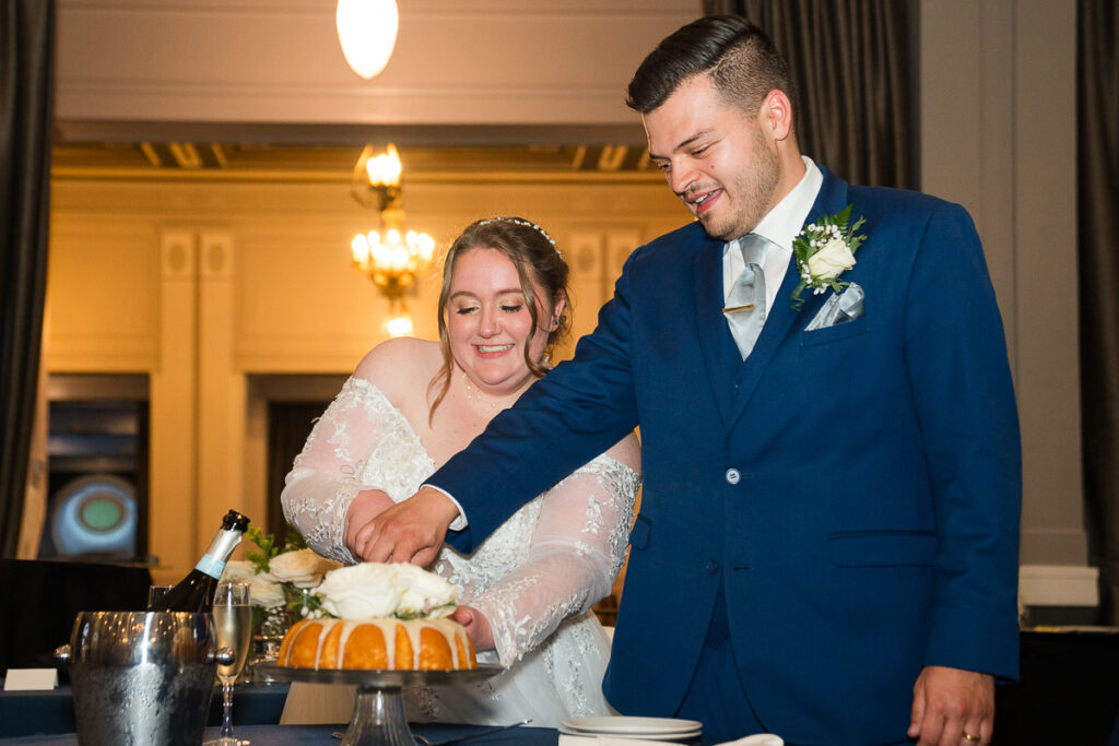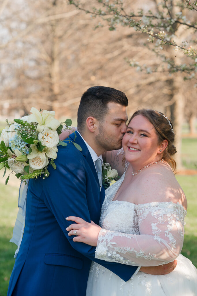 As always, The Olmsted was a perfect backdrop for a wedding. Natural light poured through the windows all day. As a result, every moment felt airy and bright. Caitlin wore a beautiful gown with lace sleeves and subtle sparkle. Meanwhile, Phil looked handsome in a classic navy tux. The bridal party supported in shades of blue.