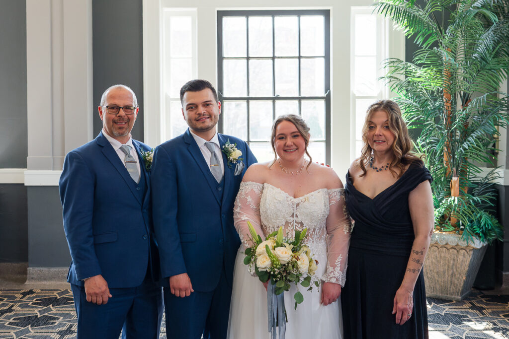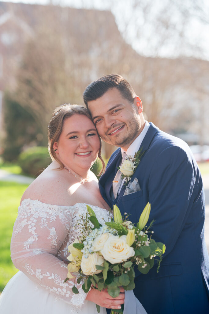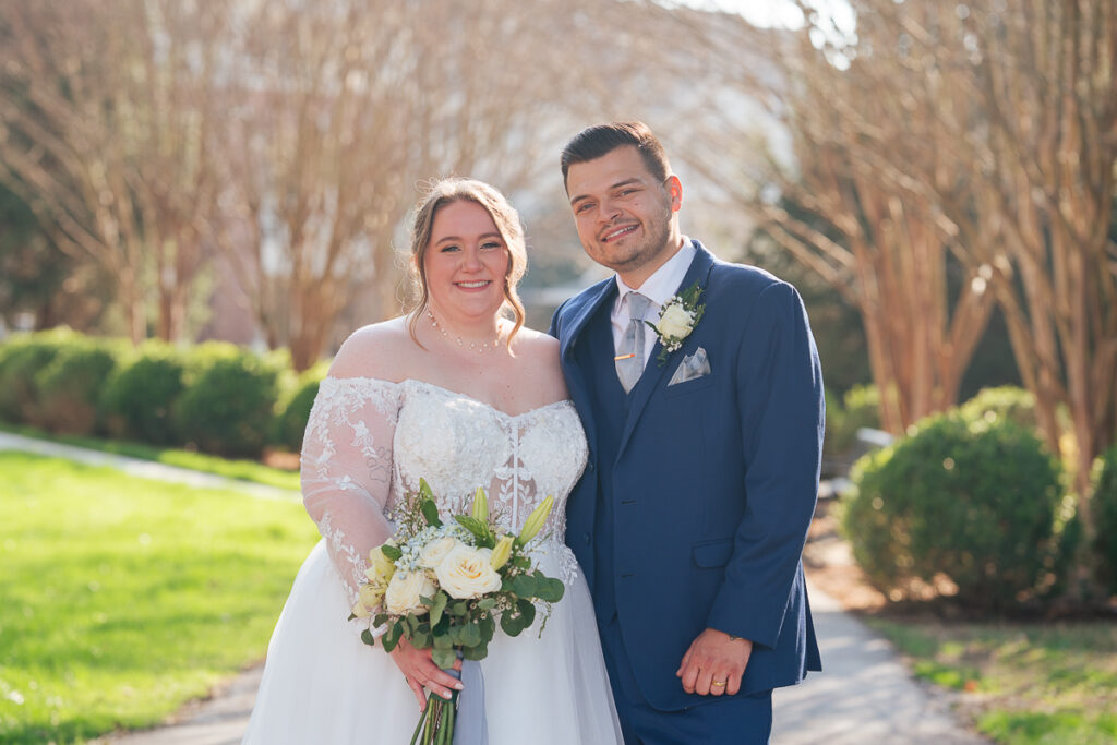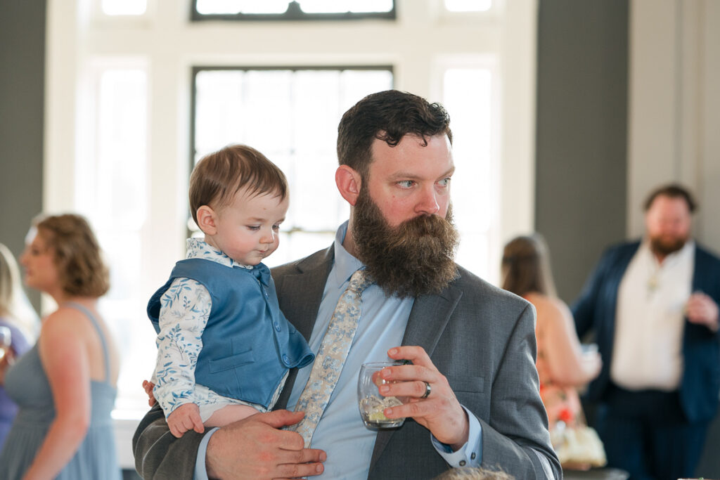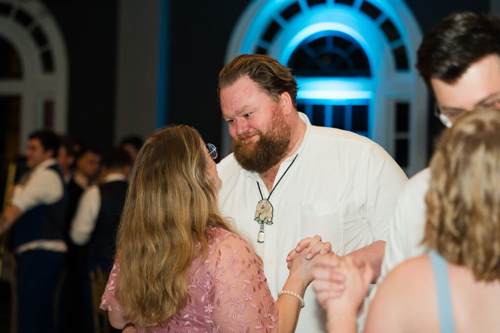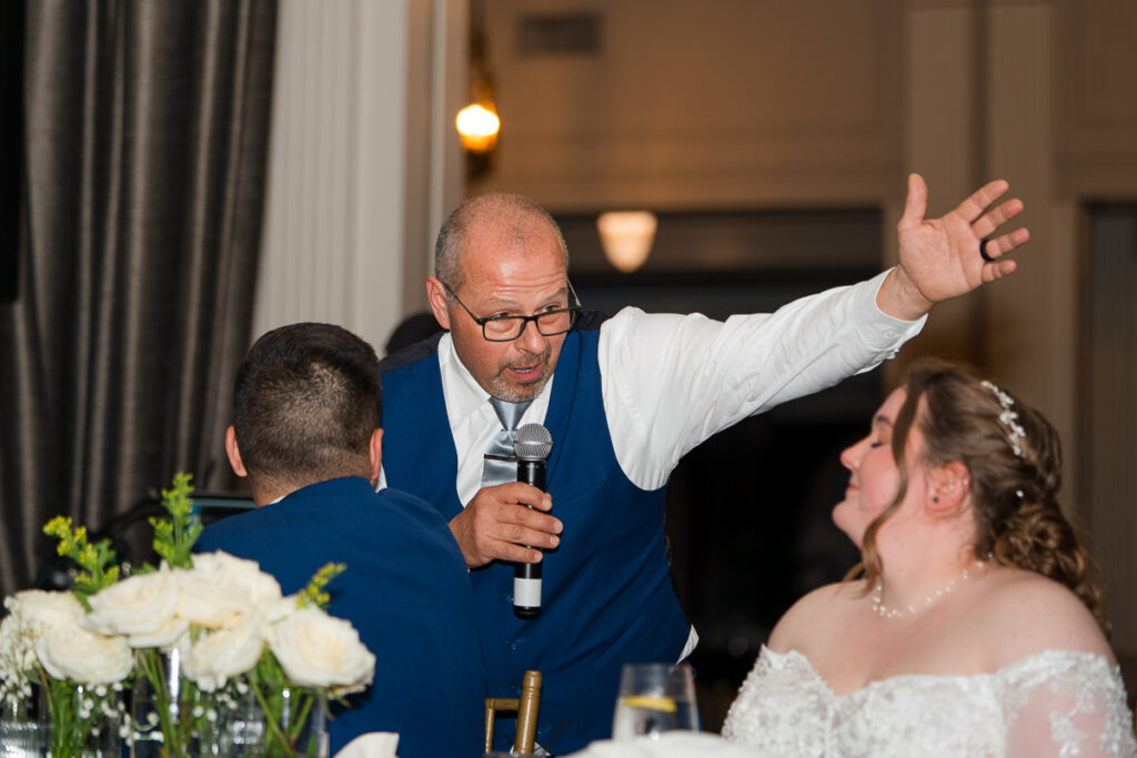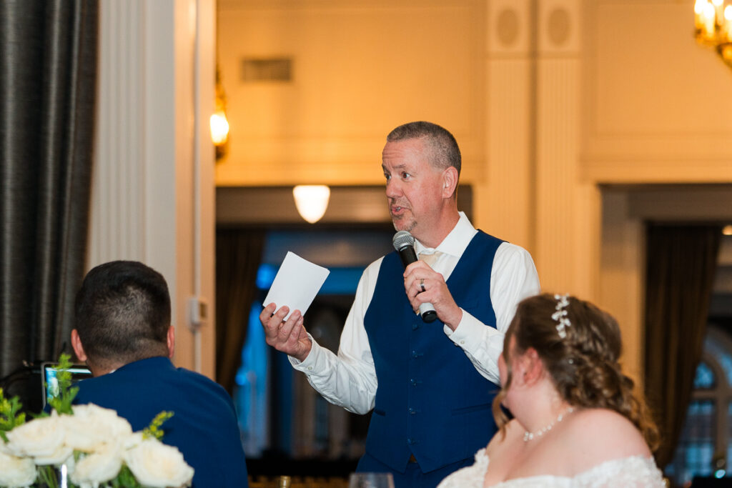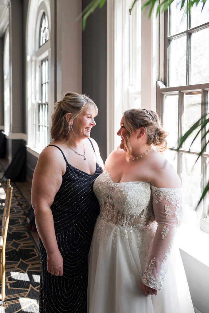As always, The Olmsted was a perfect backdrop for a wedding. Natural light poured through the windows all day. As a result, every moment felt airy and bright. Caitlin wore a beautiful gown with lace sleeves and subtle sparkle. Meanwhile, Phil looked handsome in a classic navy tux. The bridal party supported in shades of blue.