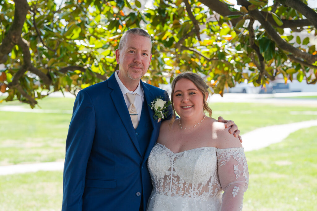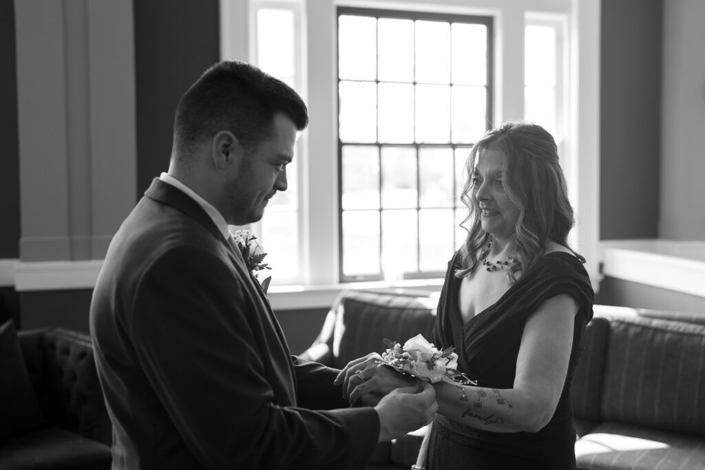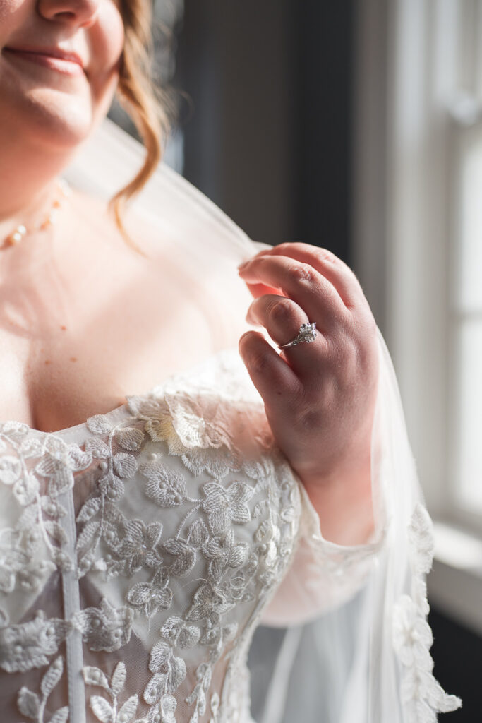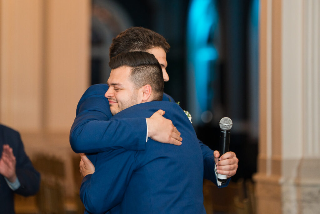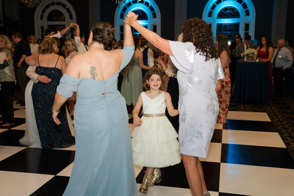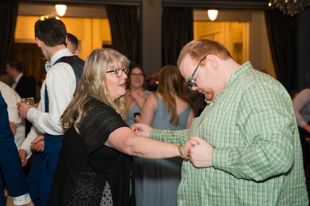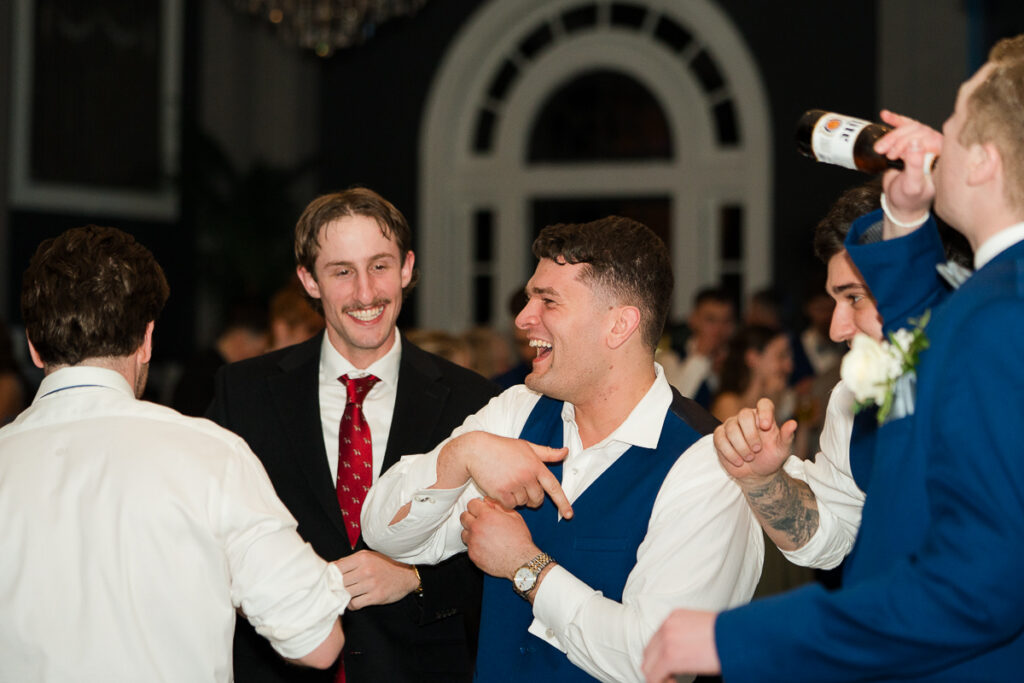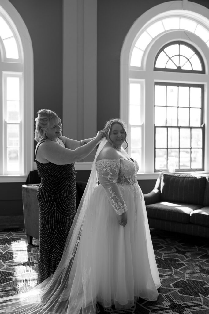 As always, The Olmsted was a perfect backdrop for a wedding. Natural light poured through the windows all day. As a result, every moment felt airy and bright. Caitlin wore a beautiful gown with lace sleeves and subtle sparkle. Meanwhile, Phil looked handsome in a classic navy tux. The bridal party supported in shades of blue.