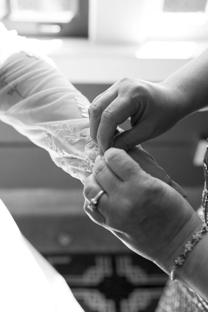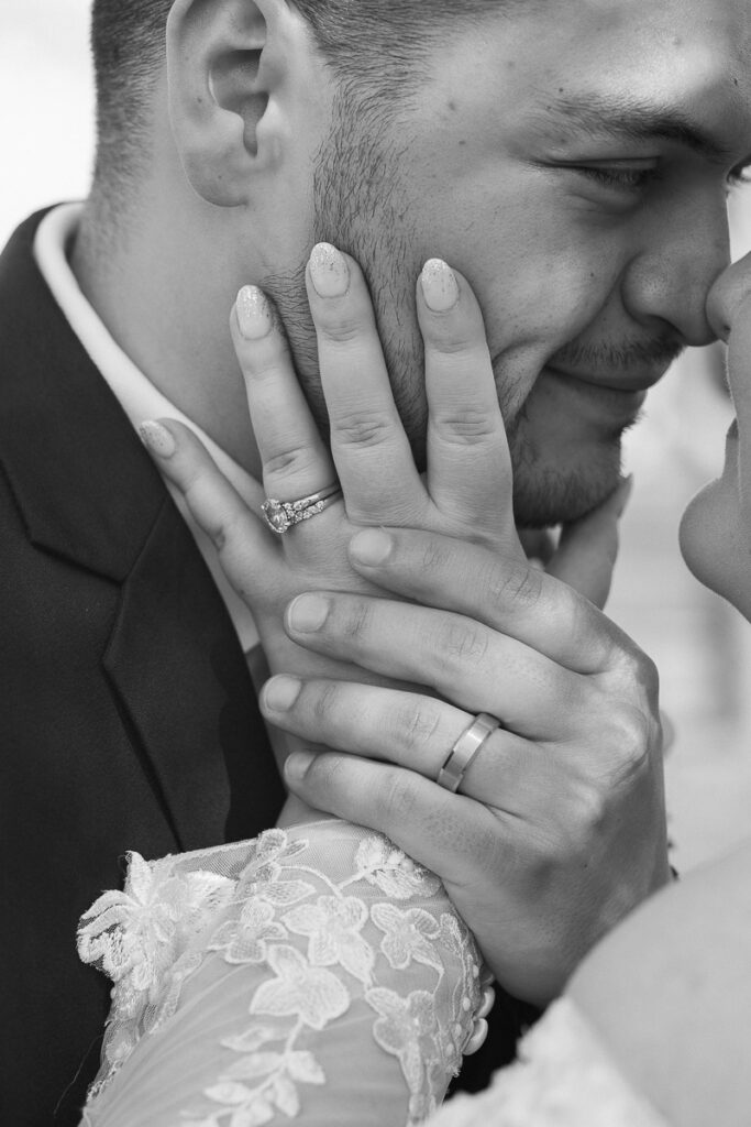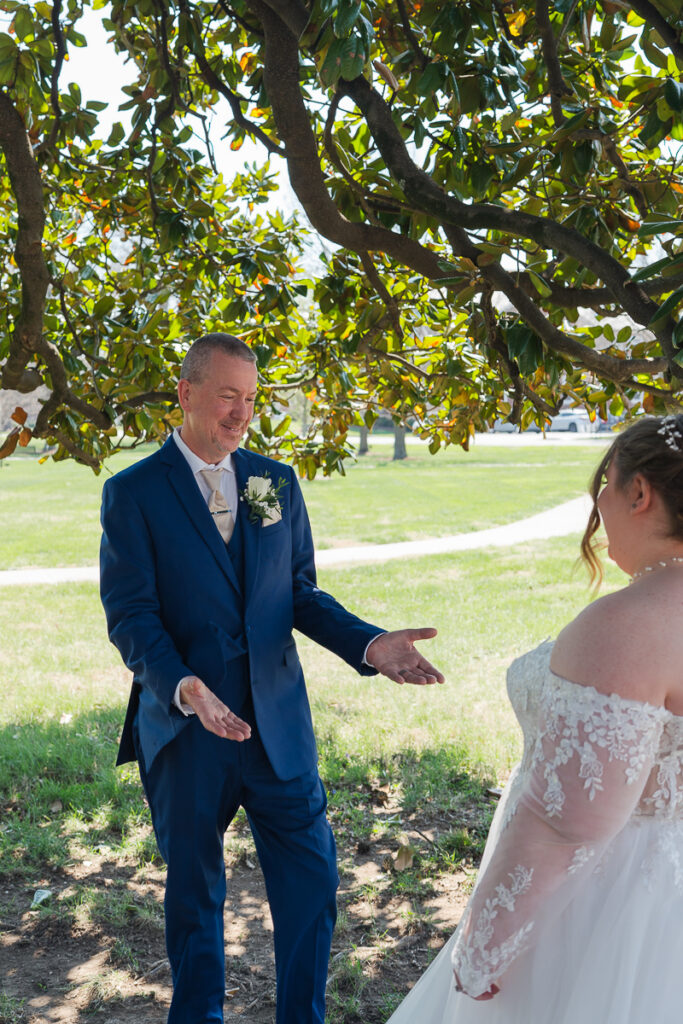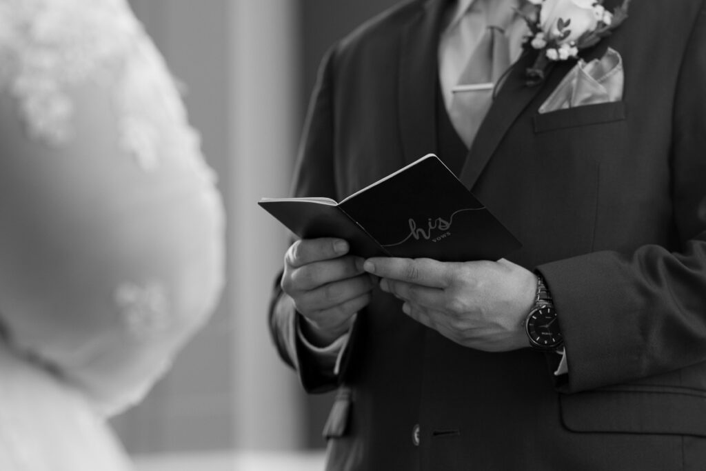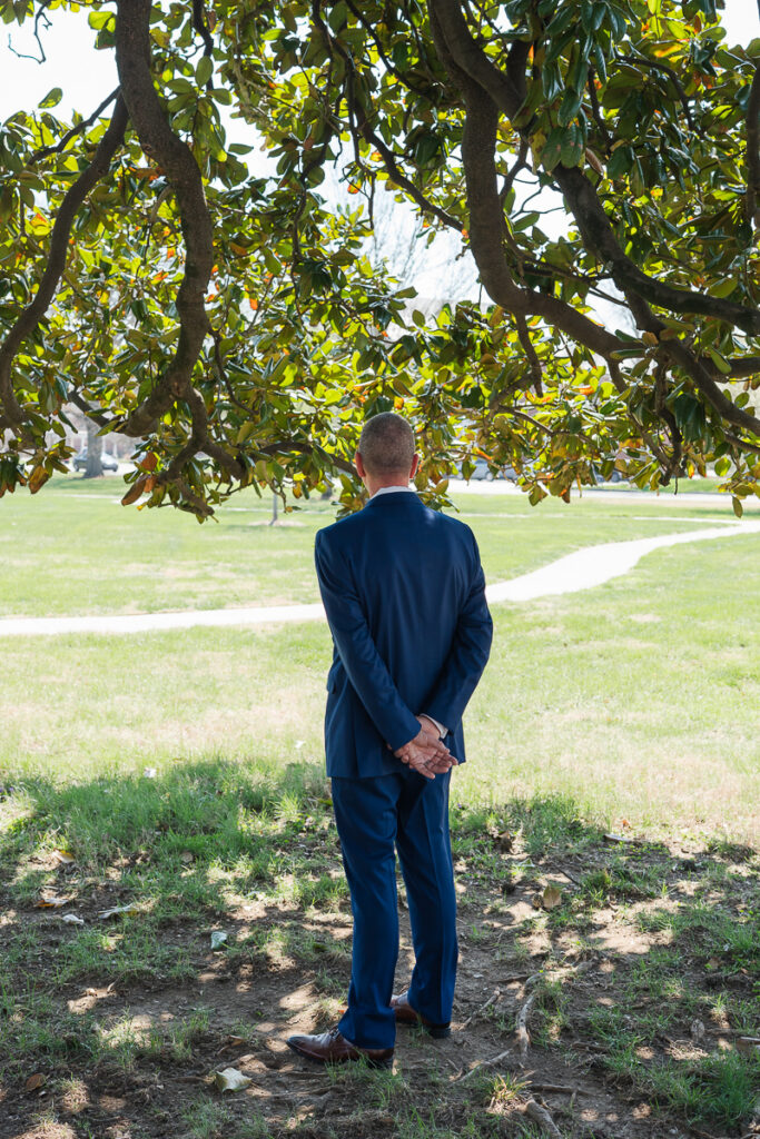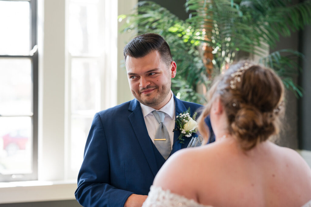 The groom waited with quiet anticipation as he prepared to see his bride for the first time. As high school sweethearts, they’ve spent 10 years seeing each other but today was different. When he saw her, his reaction said everything. He smiled and held her close. After finally seeing each other, they shared their vows privately, which set the tone for the rest of the day.